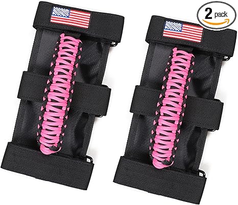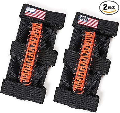 【FITMENT】For Jeep handles grab fit 2.0-4.0 inch roll bar 1945-2023 Jeep Wrangler CJ YJ LJ TJ JK JL accessories 2 door 4 door & Jeep Gladiator JT accessories, ATV, UTV (Does not work with sky one touch roof, Not for 2024+ up). 【SUPERIOR MATERIAL】Material made of the thickened paracord grab handles, metal buckle, waterproof oxford cloth, Resistant to pull, sturdy durable. Suitable for the rear of JL cars and all wrangler roll bar padding. 【GOOD PERFORMANCES】 For Jeep roll bar grab handles can help to remove the insecure feeling when traveling without doors and nothing to grab on to. Provide you with strong support as you get on or off the bus or encounter bumpy roads…