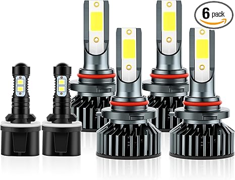 【900% Brighter Than Halogen】 H11/H8/H9 9005/HB3 LED bulbs combo with a maximum output of 60,000 lumens and 6500K color temperature, our enhanced headlights deliver a superior driving experience through advanced combo-chip LED technology. Designed to improve visibility for longer distances and quicker responses, they serve as an ideal direct replacement for standard halogen bulbs.. 【Perfect Focused Beam】The H11 9005 LED bulb set, now upgraded, delivers an optimized beam pattern with a sharp cut-off line to prevent glare for oncoming traffic. Its ultra-thin 0.03-inch profile places the chips closer together, producing a super-concentrated beam free of dark spots and shadows, guaranteeing a broader and longer view for safer nighttime driving.. 【Authentic 1:1 Mini Design】Unlike other LED bulbs, the H11 and 9005 LED Bulbs eliminate bulky heat sinks and external drivers. Through extensive testing and precise engineering, they achieve a precise 1:1 size match to halogen bulbs. Rest assured: spatial constraints within the lamp housing will not be an issue. The construction incorporates all-metal connectors for superior strength and longevity….