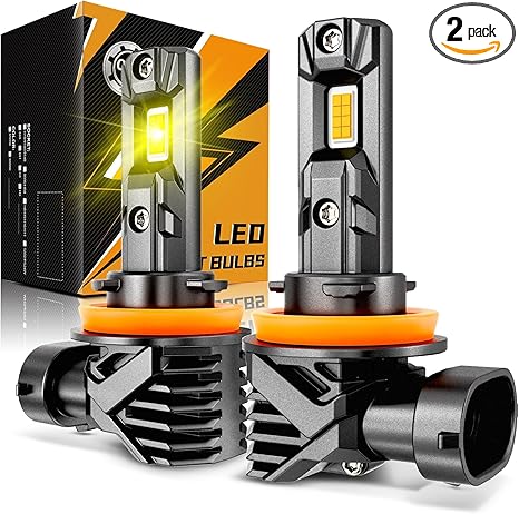 400% PENETRATING BRIGHTNESS: yellow beam, upgraded dual CSP3570 chips produce 4X brighter than original, with 150% wider coverage to spot hazards 1.5s sooner in dark or low-visibility areas. 300% better night vision, engineered for dense fog/rain. 60,000HRS LONG LIFESPAN:Dual copper bases + aviation aluminum body + fishtail heatsinks+ thermally conductive coatings + double large culverts, achieve 200% faster heat dissipation. Fanless sealed housing resists water/dust, preventing it failure and greatly reducing wear. 1:1 PRECISE BEAM PATTERN: Perfectly mimics the factorys’ beam pattern, providing uniform light distribution for a clearer and wider vision. The ultra thin head design maximizes light output. No dark spots, no shadows, no blindness to oncoming traffic…
