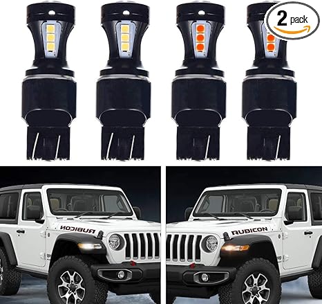 Application: Bublforst JT turn signal bulb compatible with Gladiator JT Sahara or Rubicon 2019 2020 2021 2022 2023 2024 2025. And compatible with Wrangler JL Sahara & Rubicon 2018 2019 2020 2021 2022 2023 2024 2025.. OEM Replacement: LED Turn lamp with same bulb size with the OEM stock, replace your dim, worn out factory incandescent bulbs with brighter, longer lasting front turn signal bulb and DRL kit. If your Gladiator not led package, this turn signal and running lights will be your best choose.. Bright and Long Lasting: The JT Rubicon Overland Turn led and Park DRL Lights provide a brighter, cleaner light than comparable stock bulbs. LED lights will make your vehicle more visible to other drivers, increasing your driving safety. Moreover, JT parking lights DRL consume much less power than stock bulbs, last up to 50,000 hours. DRL turn signal available white and amber, there are two pieces of turn led lamp and two pieces of parking DRL led….