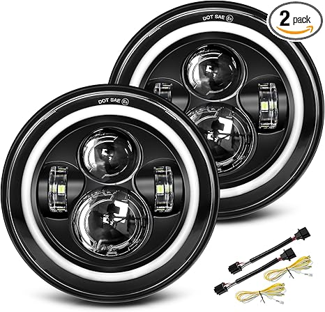 UNI-SHINE 7 inch led headlight: You can stay safe at night, foggy and rainy day. Package including: 2 pcs 7” led headlights+ 2pcs h4-h13 adapters +4pcs wiring extend cord. Better Heat Dissipation: 7″ round headlights made from quick cooling aluminum alloy heat sinks and high-quality heat conduction silicone gel can effectively extend the lifespan of the light bar to over 50,000 hours. Easy installation:Unplug the factory harness and connect all-new wires to ACC. The H4-h13 adapter fit for most vehicle, a small part may require other adapter cables….