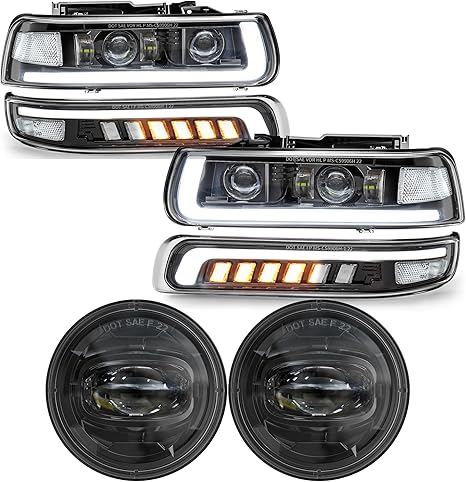 COMPATIBLE MODELS: These LED headlights and fog lights are compatible with 2001-2006 Chevy Tahoe Z71 Models, 2001-2006 Chevy Suburban Z71 Models. The installation is just like your original one. Very easy to install, Plug and play without any modifications. It takes about 20-30 minutes from start to finish.. The Latest Upgrade LED Headlights: Integrated LED headlights are designed with the newest LED chip bulbs and high-quality housing, OEM replacement, more convenient and fast. No need to worry about the difficult installation of bulbs and housings or inappropriate hole positions.. ADVANCED LED DESIGN: With advanced 6500K LED chips, these LED fog lights give out 2128LM/Set light output. 400% brighter than stock halogen. Designed with high-focus projector lens, our LED fog lights provide widely and perfectly distributed beam patterns in the day/ nighttime driving to increase visibility and ensure driving safety….