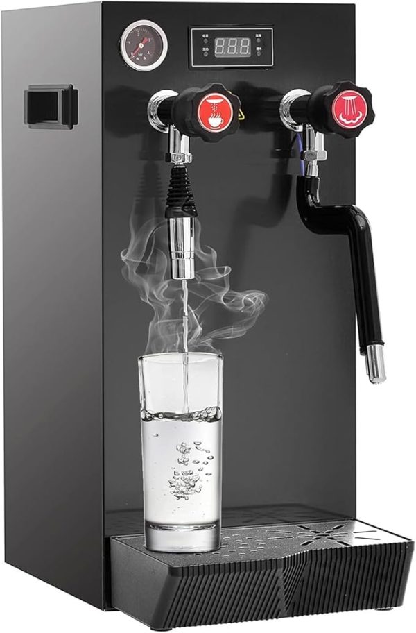 SCOPE OF APPLICATION- While boiling water on the left side, the right side can also be used to make milk tea to make the milk tea taste better. Suitable for homes, milk tea shops, dessert shops, breakfast shops, hotels, restaurants, exhibitions and other places.. HIGH-QUALITY MATERIALS- The product shell is made of food-grade stainless steel, which has the characteristics of high temperature resistance, wear resistance, rust and corrosion resistance, sturdiness and durability, and easy to clean.. HIGH EFFICIENCY- 2200W high power, the machine needs to be lifted to preheat, it only takes 2 minutes to boil water after preheating. The machine has a capacity of 8L and uses LED high-definition display….
