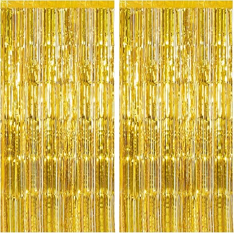 2 Pack Gold Backdrop Birthday Decorations Foil Curtain Backdrop Gold Streamers Dance Party Decorations Photo Booth Props for Bachelorette Decorations Christmas Halloween New Years Eve Party Supplies