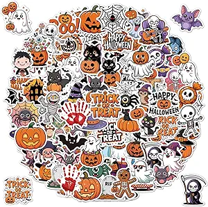 100Pcs Halloween Stickers Bulk – Halloween Party Favors for Kids – Waterproof Vinyl Halloween Decorations for Classroom Crafts, Treat Bags, Trick Or Treat Gifts