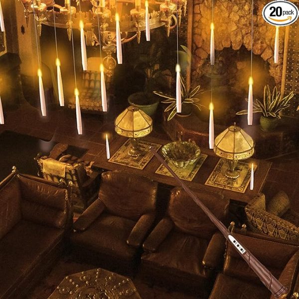 Jmtone Flickering Warm Light Flameless Floating Led Candle With Wand Remote Battery Operated Window Taper Candle Set Theme Party Birthday Gift Halloween Decorations Floating Candles 20 Pcs