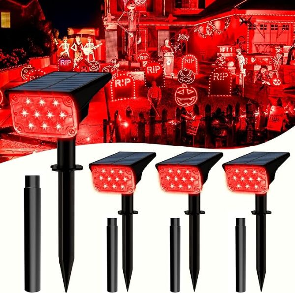 T-Sunus Halloween Red Solar Spot Lights Outdoor, Ip65 Waterproof Auto On/Off Adjustable Landscape Garden Spotlight Christmas Led Lighting for Tree Pathway Yard Driveway Wall Patio Lawn Flag 4 Pack