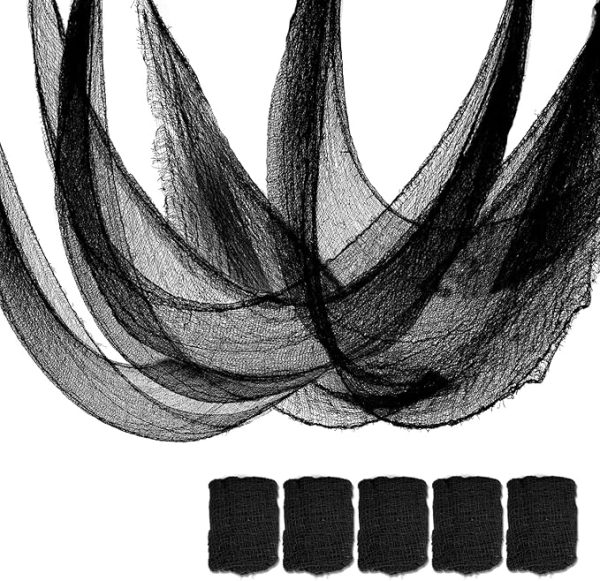 Set Of 5 Halloween Creepy Gauze Cloth Decoration, Indoor Outdoor Black Scary Halloween Gauze Tapestry Decor, Spooky Decorations for Home Wall Yard Haunted House Party Supplies, 72 X 30 Inch