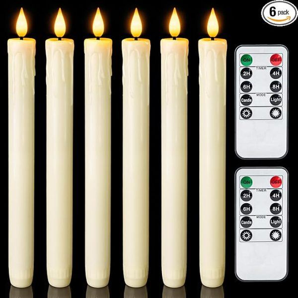 Homemory 6 Pcs Flameless Taper Candles With Remote Timer And Dimmer, Led Candle Sticks With Flickering Light, Ivory Battery Operated Window Candles, 9.6 Inches for Wedding Home Indoor Decoration