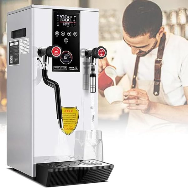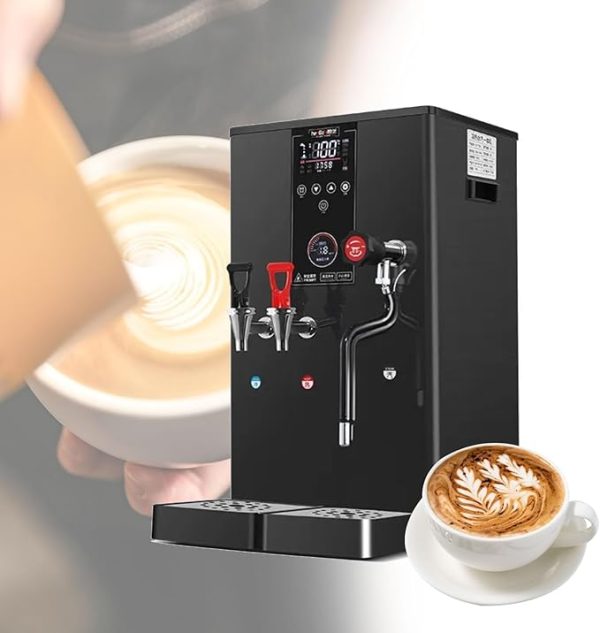 【High-quality Material】The milk frother is made of high-quality stainless steel, which is sturdy and durable. Equipped with an induction suction booster pump, it is suitable for various bottled water and tap water or water sources with low water pressure. When using for the first time, it is recommended to add water to boil and clean before use.. 【Safe to Use】The electric milk frother adopts 32-bit embedded waterproof, dustproof, and moisture-proof circuit board, and the heat sink can enhance the internal air circulation and prolong the service life. It has high temperature resistant pressure protection and automatic pressure relief protection to ensure safety.. 【Efficient Work】This milk frother has a power of 3000W and fast heating speed. 50L/h gallon capacity can provide you with multiple cups of hot water and delicious coffee at one time. High-pressure double boiler technology, steam and boiling water are independent, ensuring continuous supply of steam and boiling water….