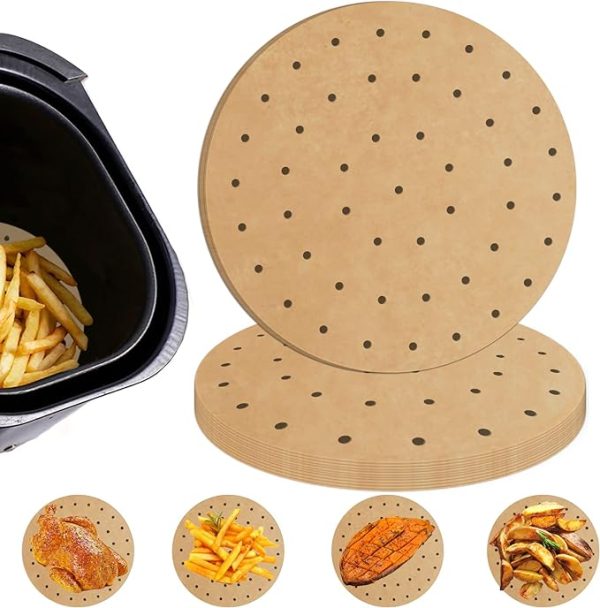 Easy to Use: Our pre-cut 8 inch round air fryer parchment paper liners are suitable for most air fryers on the market and can be used for baking, frying, grilling and so on. Each package comes with 100 liners, which is likely to last at least 3-5months of air fryer cooking in the average home. If you think about how many hours you’ll save on cleanup, these liners more than pay for themselves. Heat Resistance Brings You Safe Cooking: The parchment paper for air fryer can withstand high temperature up to 450℉(230℃) that can be used in the oven or steamer, which is resistant to high temperature and baking. Warm Tips: For the safety of you and your family and for unnecessary waste, please put paper in the air fryer after preheating. Then place enough food or other things evenly. Enjoy Delicious and Beautiful Food: The air fryer paper liners are made of 100% pure natural pulp, no fluorescent agent, safe and healthy. You can enjoy delicious food at ease. The food-grade silicone oil is fused with paper through precise technology, so they have prominent anti-sticking. You can easily pick up intact and beautiful food…