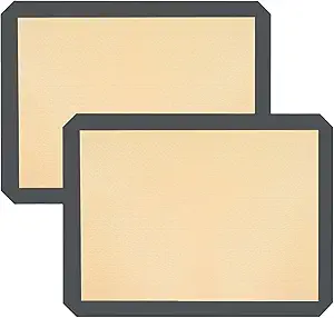 Packaging & Size: We include a 2-pack large silicone baking mat per pack, measuring 11.8 x 15.7 inches. Easy to bake and enhance your baking results.. Easy to clean and store: These silicone baking mats are very easy to clean. You can use a soapy sponge to scrub and quickly get the stains clear. You can also wash them in the dishwasher to save time and effort. For storage, you can simply roll up the baking mats and place them in your organizer; they won’t take up any extra space at all.. Durable & Food-Safe Silicone: Our silicone baking mats are made of high-quality fiberglass base cloth and organic silicone. These food-grade baking mats are non-toxic and odorless. Silicone baking mats will never lose their luster or fade in color and are designed for long-lasting durability….