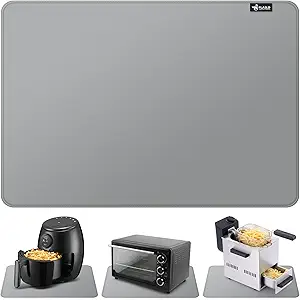 Size :Sized at 25″x 17″x 0.03″(Length x Width x Thickness), large enough to protect your counter top, it can be placed under the microwave, air fryer, induction stove, toaster oven, coffee maker etc.. Non-slip Bottom : The kitchen protector pad can stick tight to the countertop or other surfaces, used the smooth side down, it does not slip and slide on the countertop.. Durable & Reusable : Countertop pad is made of 100 percent food grade silicone, heat resistant between -40℉ and 446℉.Non-slip, non-stick, not easy to deform or tear up, durable reusable….
