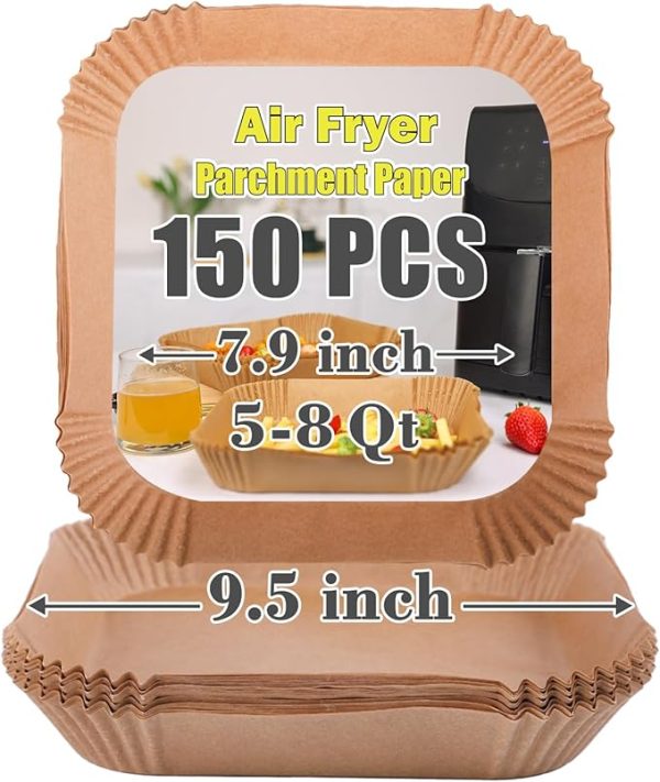 Goaus Air Fryer Square Paper Liners Disposable Large 150 Pcs For 5 To 8 Qt Basket