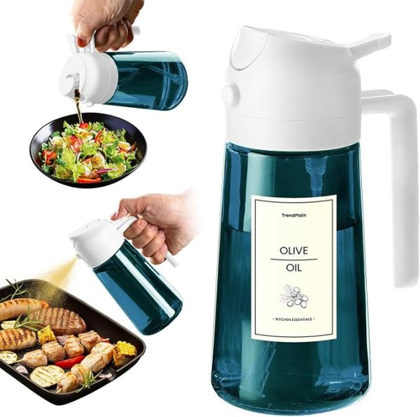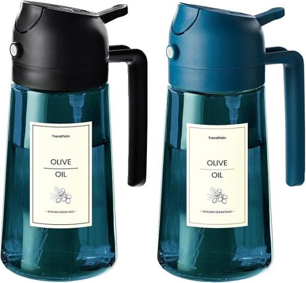 Trendplain 16Oz/470Ml Blue Glass Olive Oil Sprayer For Cooking – 2 In 1 Olive Oil Dispenser For Kitchen Gadgets
