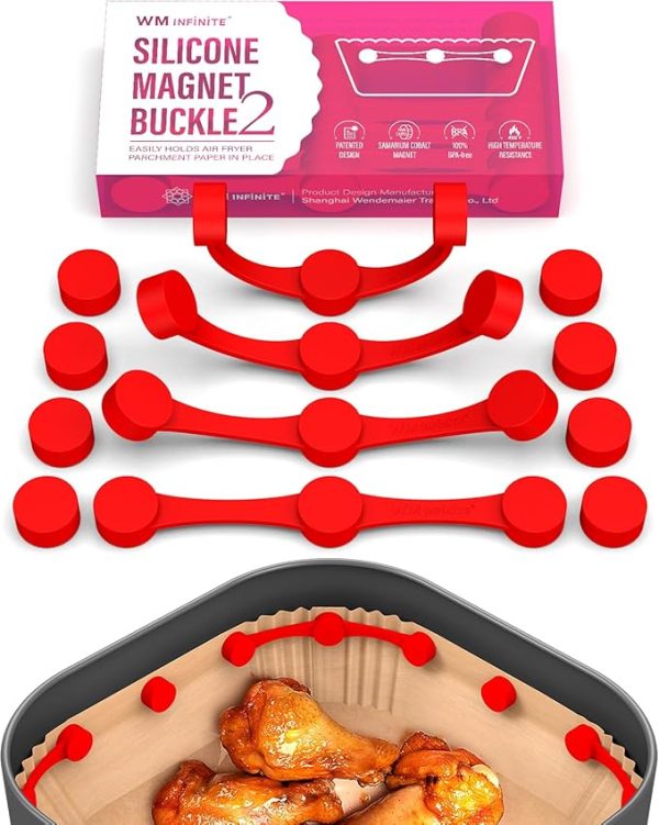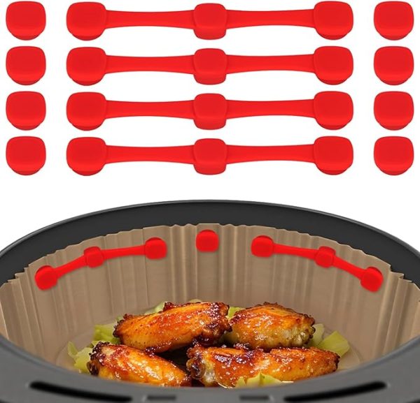 【Air Fryer Magnets for Parchment Paper】These magnetic buckles are specially designed to secure disposable parchment paper in air fryers. They effectively prevent the paper from lifting or touching the heating element, reducing the risk of fire and ensuring even cooking. They provide reliable safety throughout the cooking process.. 【Upgraded Strong Magnet Design】Featuring built-in high-temperature-resistant magnets, these buckles can withstand temperatures up to 570°F (about 300°C) without losing magnetic strength. They firmly attach to the air fryer, keeping the parchment paper stable, preventing it from shifting or curling during cooking.. 【Food-Grade Silicone Material】Made of high-quality food-grade silicone, these buckles are soft, durable, and heat-resistant. They won’t deform or release harmful substances, even at high temperatures, ensuring safety and health….