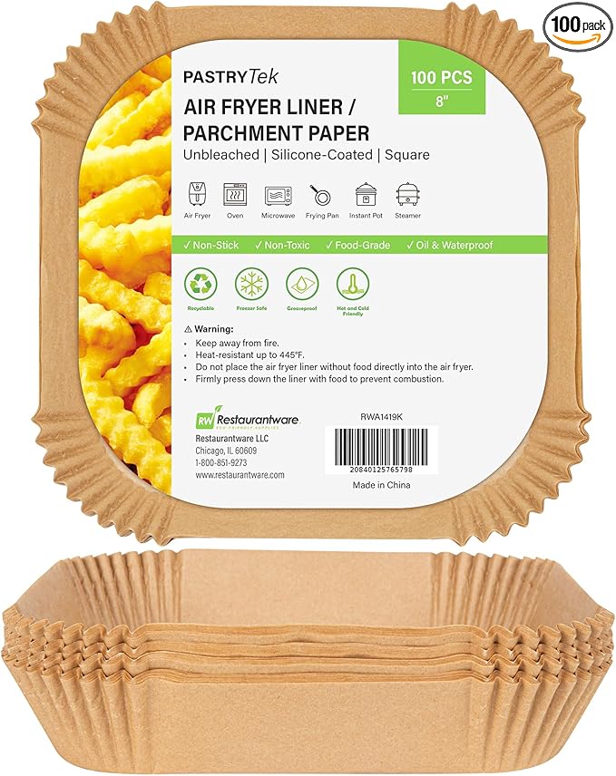 [PERFECT FIT FOR AIR FRYER]: This Large air fryer liners are 10 inches, ensuring that each piece of air fryer basket liner paper fits perfectly in your fryer basket, eliminating the need for extra cutting work and making your cooking easier and faster.. [HIGH TEMPERATURE RESISTANCE]: The air fryer paper liners material is specially treated to withstand extremely high temperatures up to 428°F, ensuring that the food will not be damaged or deformed when frying.Meanwhile please make sure you put enough food in or the fryer sheet may catch fire!. [NON-STICK DESIGN]: Special silicone coating design reduces food contact with the air fryer basket, our air fryer liners prevents food from sticking and ensures a more complete meal every time you cook, keeping the flavor and nutrients intact….