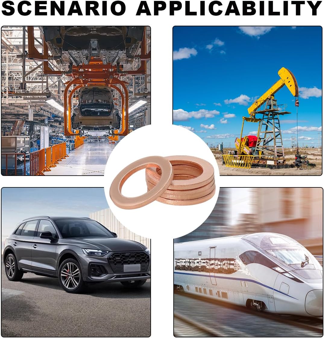 【High Quality Material】: Oil drain plug gasket is made of high-quality copper material, which is corrosion-resistant and resistant to high and low temperatures. Its surface is smooth and wear-resistant, with good sealing performance, and it is not easy to wear out after long-term use.