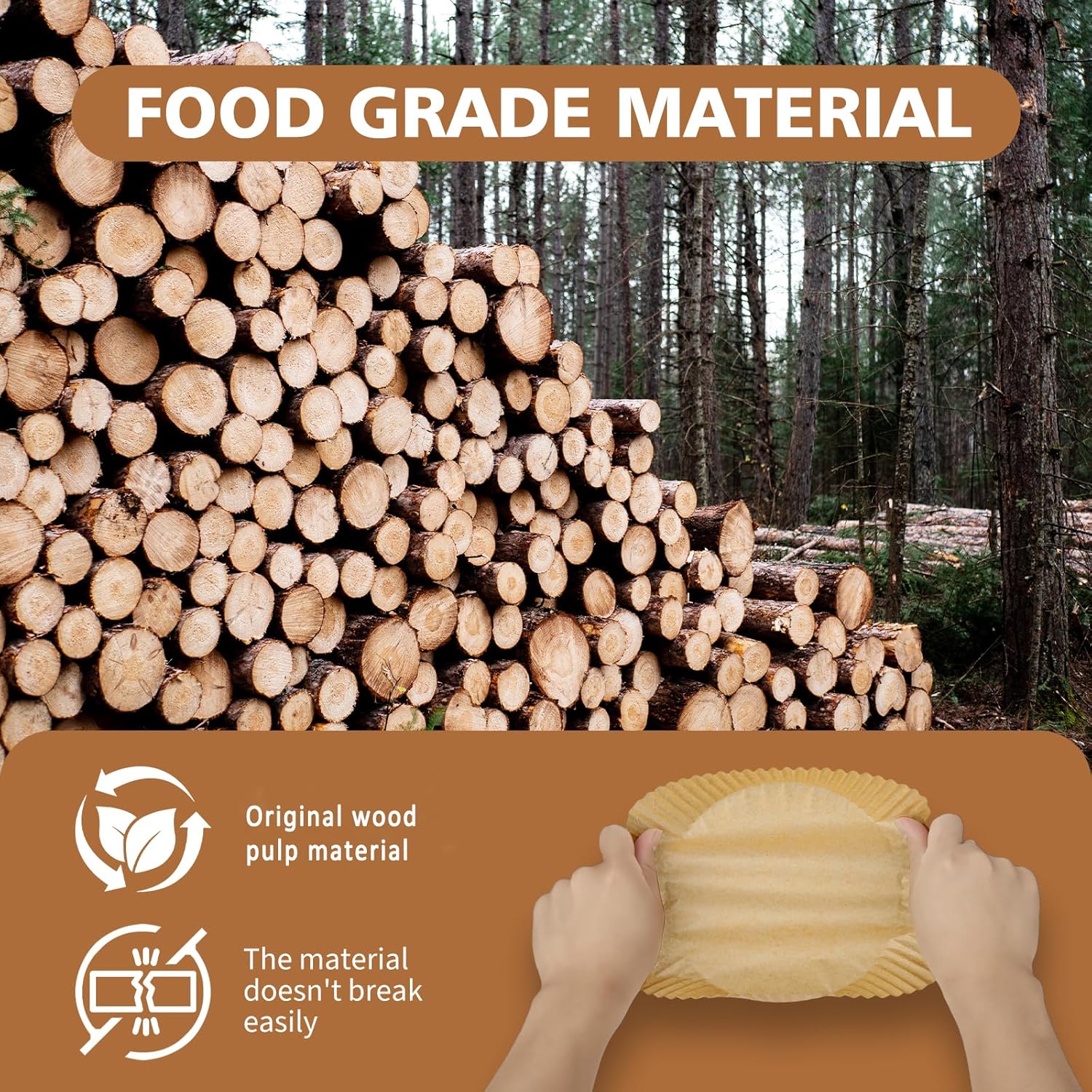 - Healthy and Reliable Material: Food grade air fryer parchment paper liners for air fryer are non-stick, grease-proof, waterproof, healthy, and heat-resistant up to 428 degrees Fahrenheit. Perfectly maintains the delicious taste of food. The material of air fryer disposable paper liner is biodegradable and green. You can use our food grade air fryer liners with confidence.