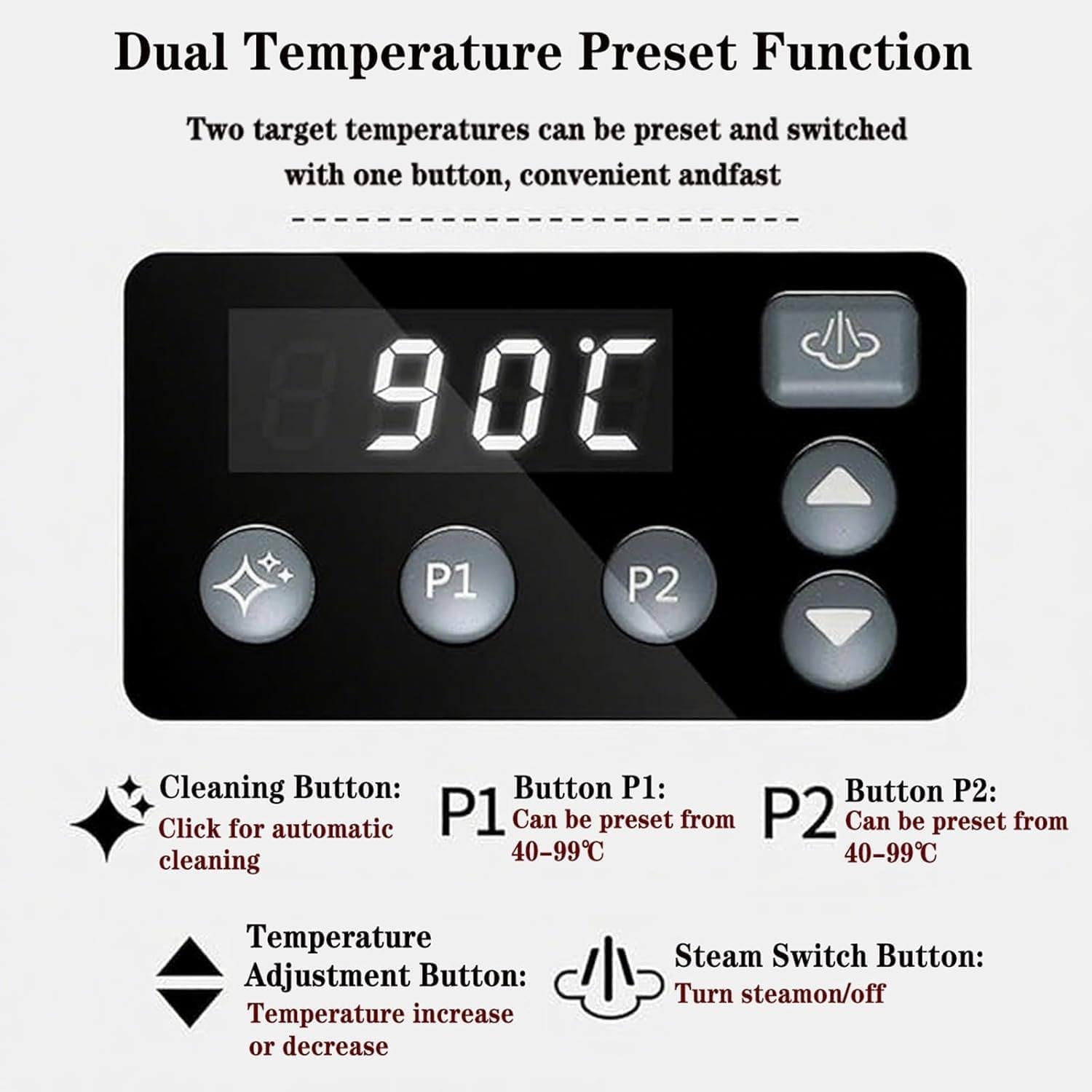 - LED Digital Control Panel:The LED display and temperature adjustment buttons allow you to easily switch between 40°C and 90°C/104°F and 194°F in Celsius or Fahrenheit. One-touch cleaning and a preset menu simplify operations and provide you with a hassle-free experience.