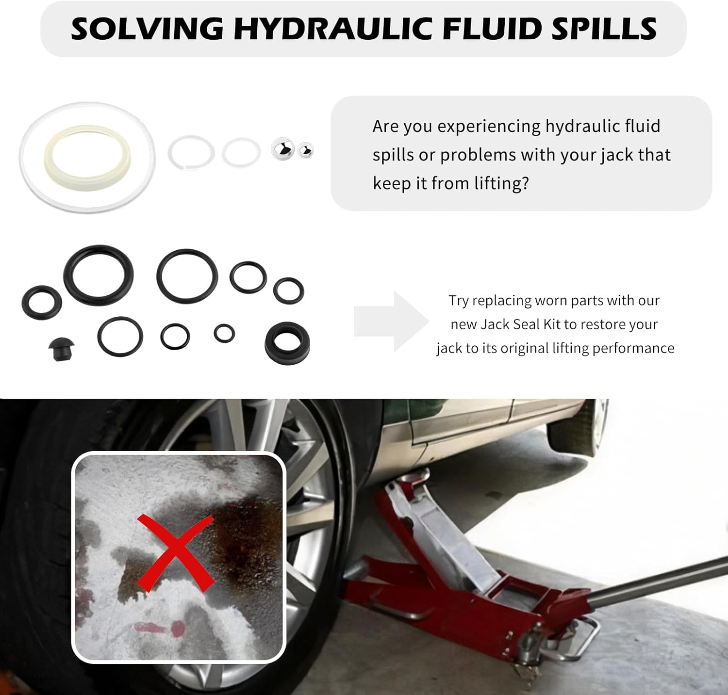 - Solving Hydraulic Fluid Spills: Are you experiencing hydraulic fluid spills or problems with your jack that keep it from lifting? Try replacing worn parts with our new Jack Seal Kit to restore your jack to its original lifting performance
