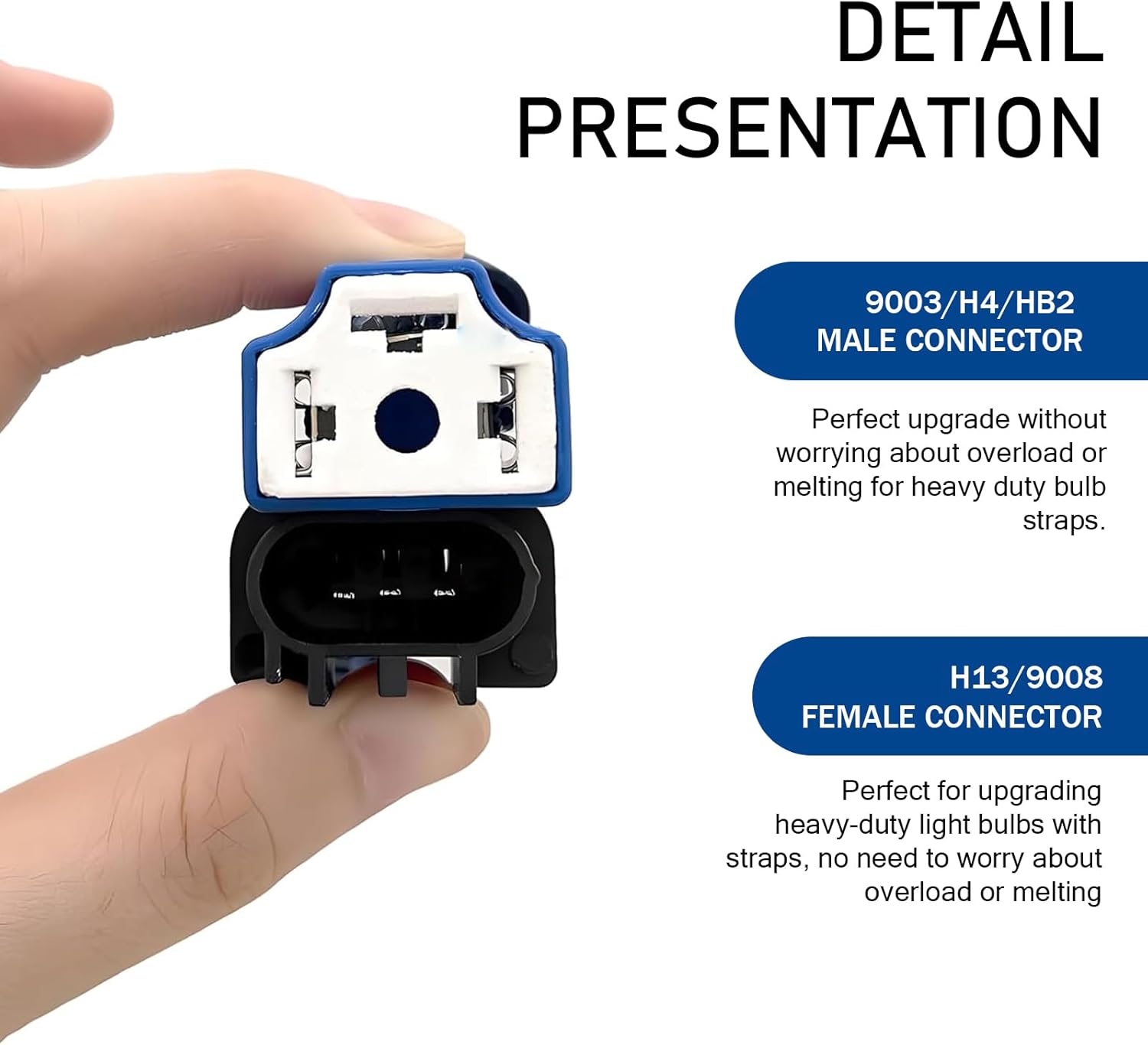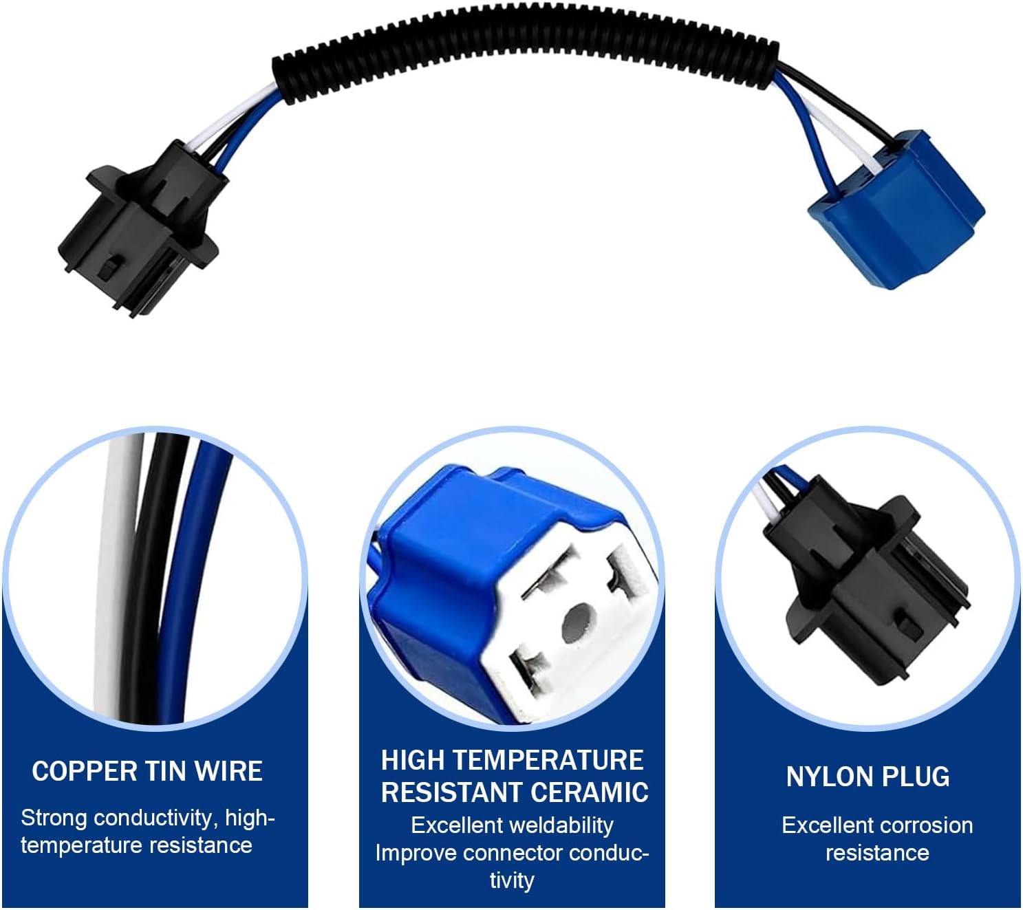 Premium Ceramic Construction: These wiring adapters utilize high-grade ceramic material that provides exceptional heat resistance and electrical insulation. The ceramic housing incorporates advanced waterproof and dustproof technology for reliable performance in all conditions. Inside, high-efficiency copper wiring ensures optimal conductivity and power transmission.. Functional Applications: This H4 to H13 conversion adapter enables seamless installation of various lighting upgrades including daytime running lights and HID bulb systems. It simplifies retrofit projects by providing a direct plug-and-play solution without concerns about electrical overload or compatibility issues.. Durable Performance: The adapter maintains stable operation even under the high temperatures generated by modern lighting systems. Compatible with LED, HID, Halogen, SMD and OEM bulb sockets, it delivers maximum power output while withstanding demanding automotive environments. The rugged construction ensures long-term reliability for all your lighting upgrade needs….