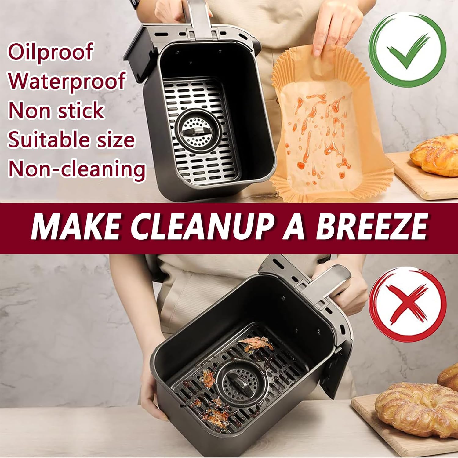 - 【EASY TO USE】The disposable liners are designed to match the shape of your air fryer basket, so you don’t need to spend time folding or cutting it—just place it in the basket when you’re ready to cook.