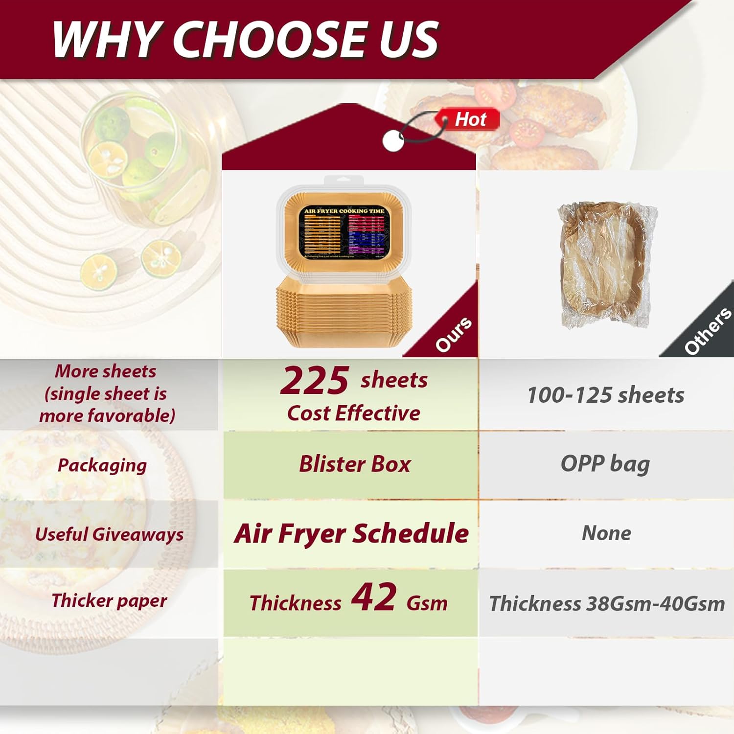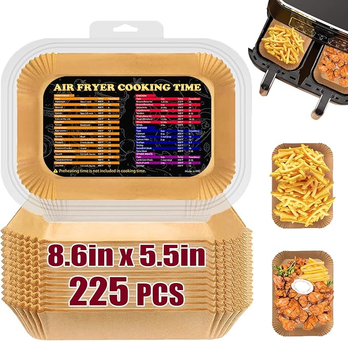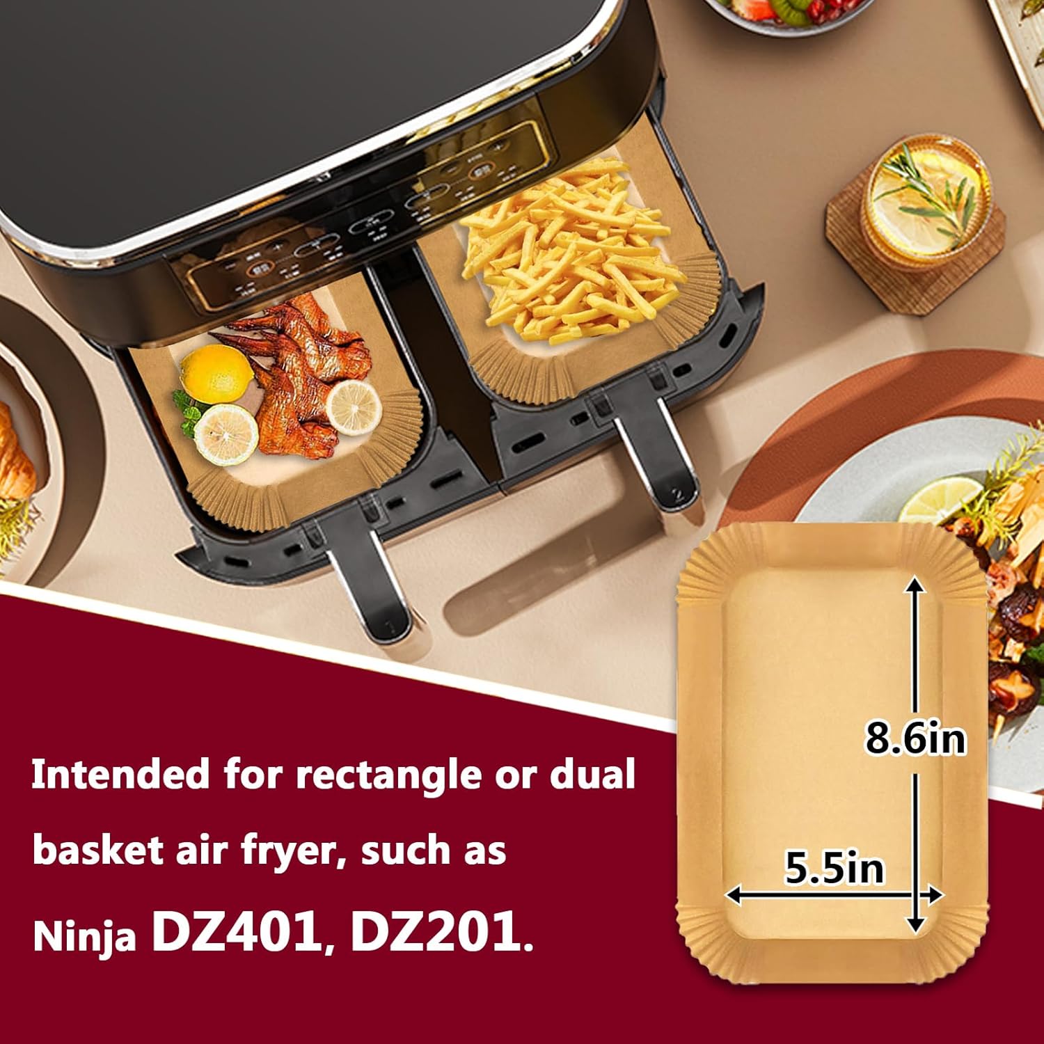 - 【225PCS Air Fryer Paper Liners for Ninja Foodi】The bottom size of baking paper size is 8.6 * 5.5. Compatible for Ninja DZ201/DZ401/DZ550/SL401 Dual Airfryer and CHEFMAN 6 Quart Dual Basket Air Fryer. 225 pieces disposable liners in a see-thru package, good vaule for money, enough for a long-time use.