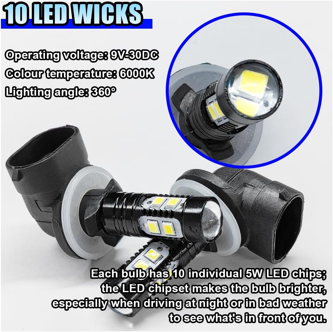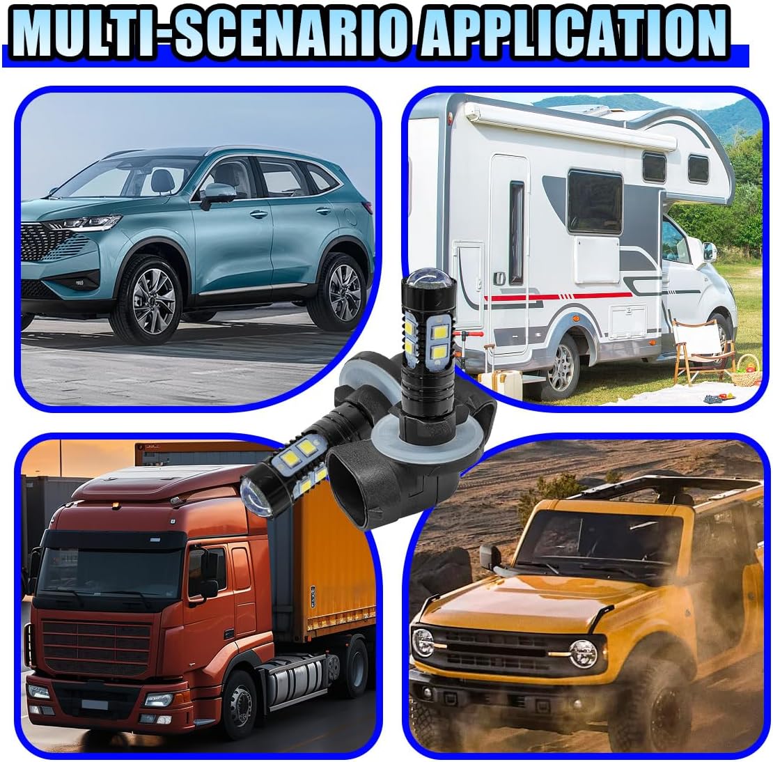 - 【Wide Application】:Cross Reference: 881, 862, 886, 889, 894, 896, 898, LED lights for cars are widely suitable for various passenger cars, SUVs, pickups, and other vehicle models, can be perfectly applied to daytime running lights and fog lights scenarios, ensuring that in environments with poor light such as foggy days, rainy days, and nights, it can also provide reliable lighting support to ensure driving safety.