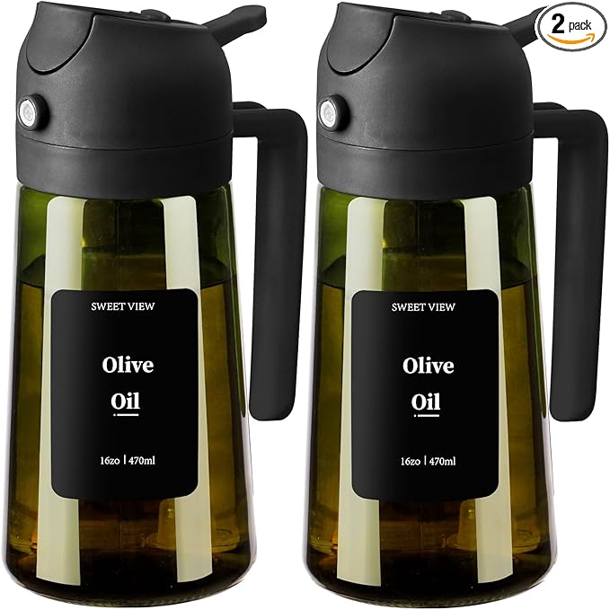 - 2-in-1 Design – Combines an oil dispenser and oil sprayer in one. Easily spray oil to control fat intake or pour oil for precise seasoning. Perfect for grilling, baking, salad dressing, and other food preparation processes.