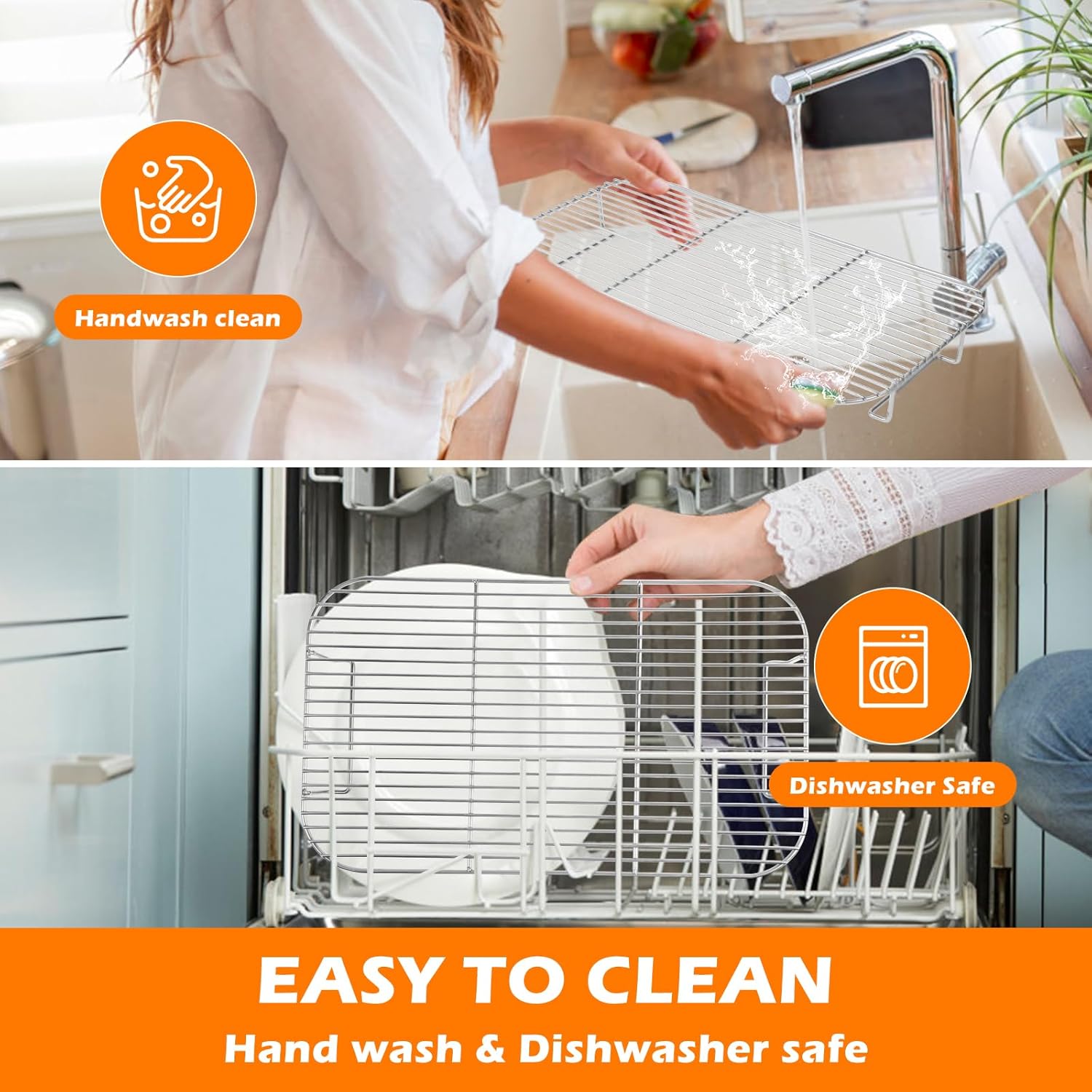 EASY TO CLEAN: The oven grill rack has a non-stick surface, so even if some food sticks to it, it will come right off after a quick soak; the oven rack is dishwasher safe, which makes cleaning easier and saves you a lot of valuable time