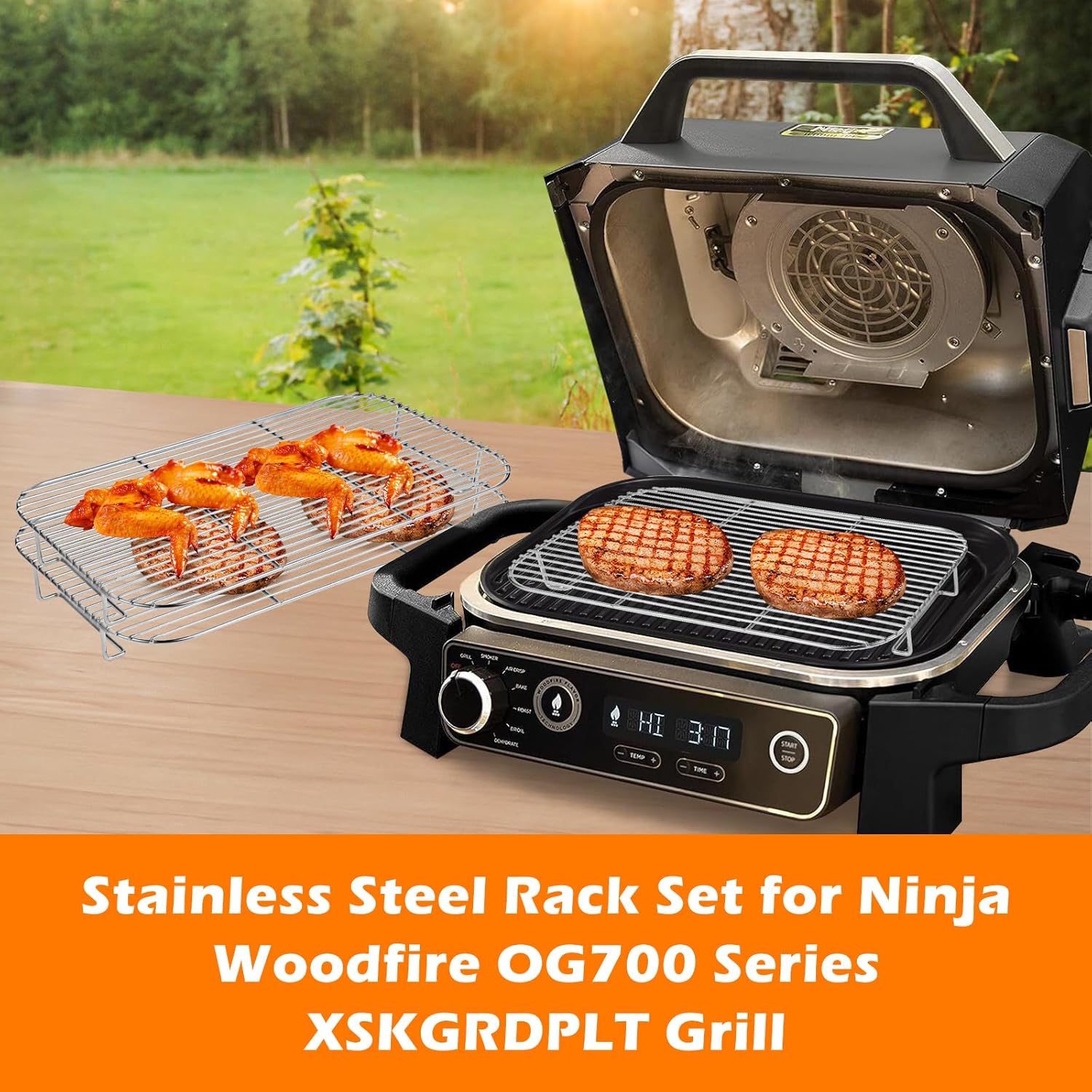 2Pcs Stainless Steel Rack Set For Ninja Woodfire Outdoor Grill And Smoker