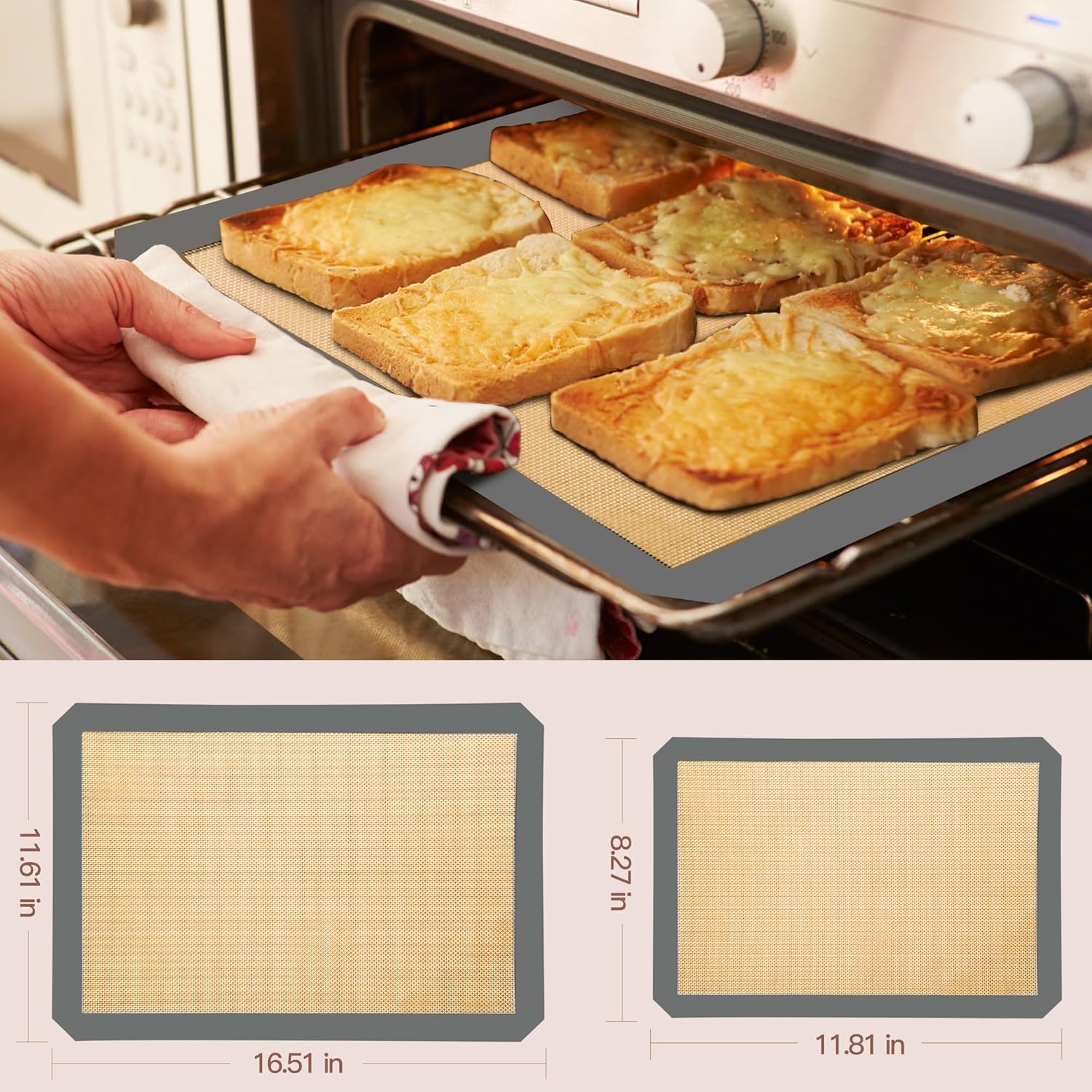 【Optimal Sizes & Features】Includes two Medium silicone baking mats (16.51 x 11.61 inches) and one smaller silicone baking sheet (11.81 x 8.27 inches), all equipped with non-slip edges, making them stable and versatile for various baking projects. Fit perfectly on a cookie sheet.