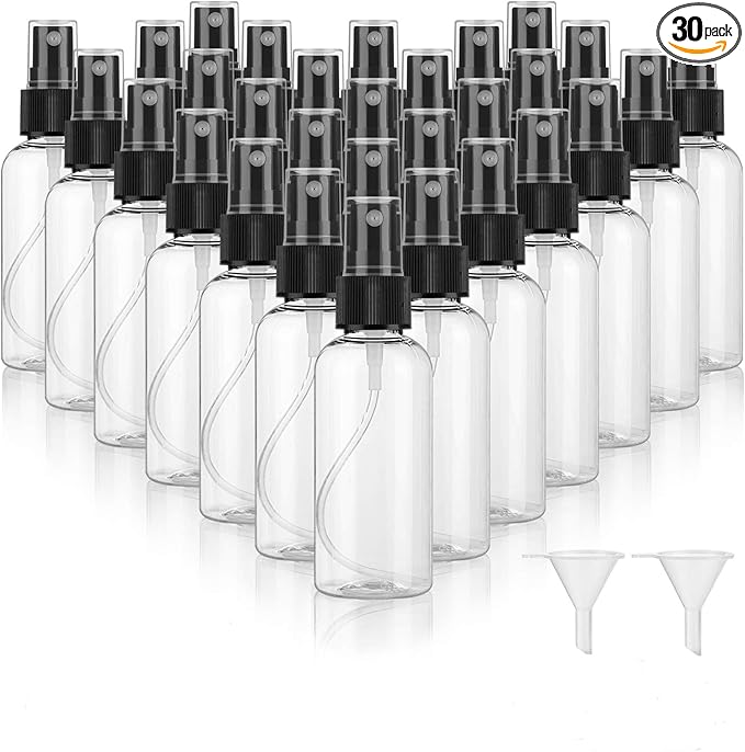 30 Pack 2 Oz Fine Mist Mini Clear Spray Bottles With Pump Spray Cap – For Essential Oils