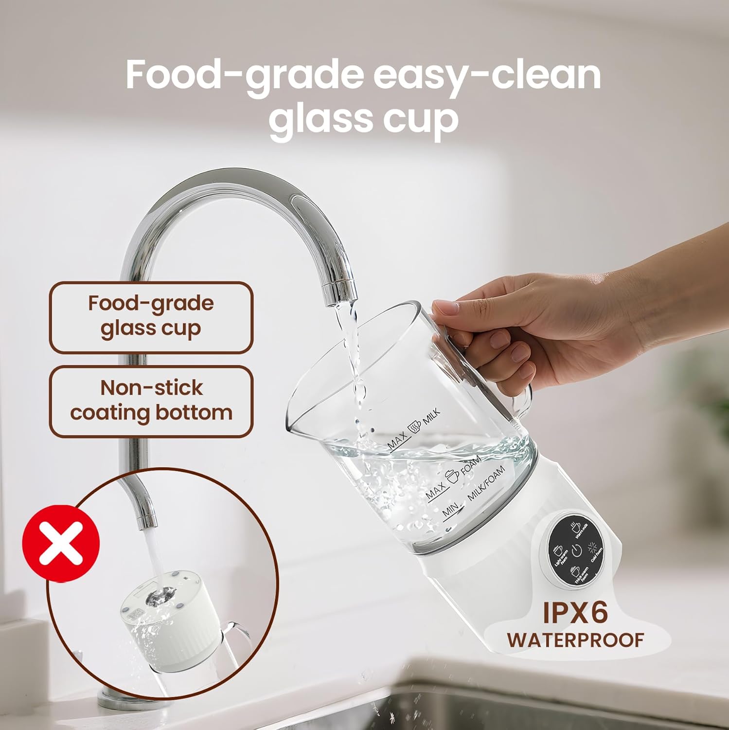 See the Magic Happen: Transparent glass lets you watch the frothing process for better control. Please use dairy milk for better foam