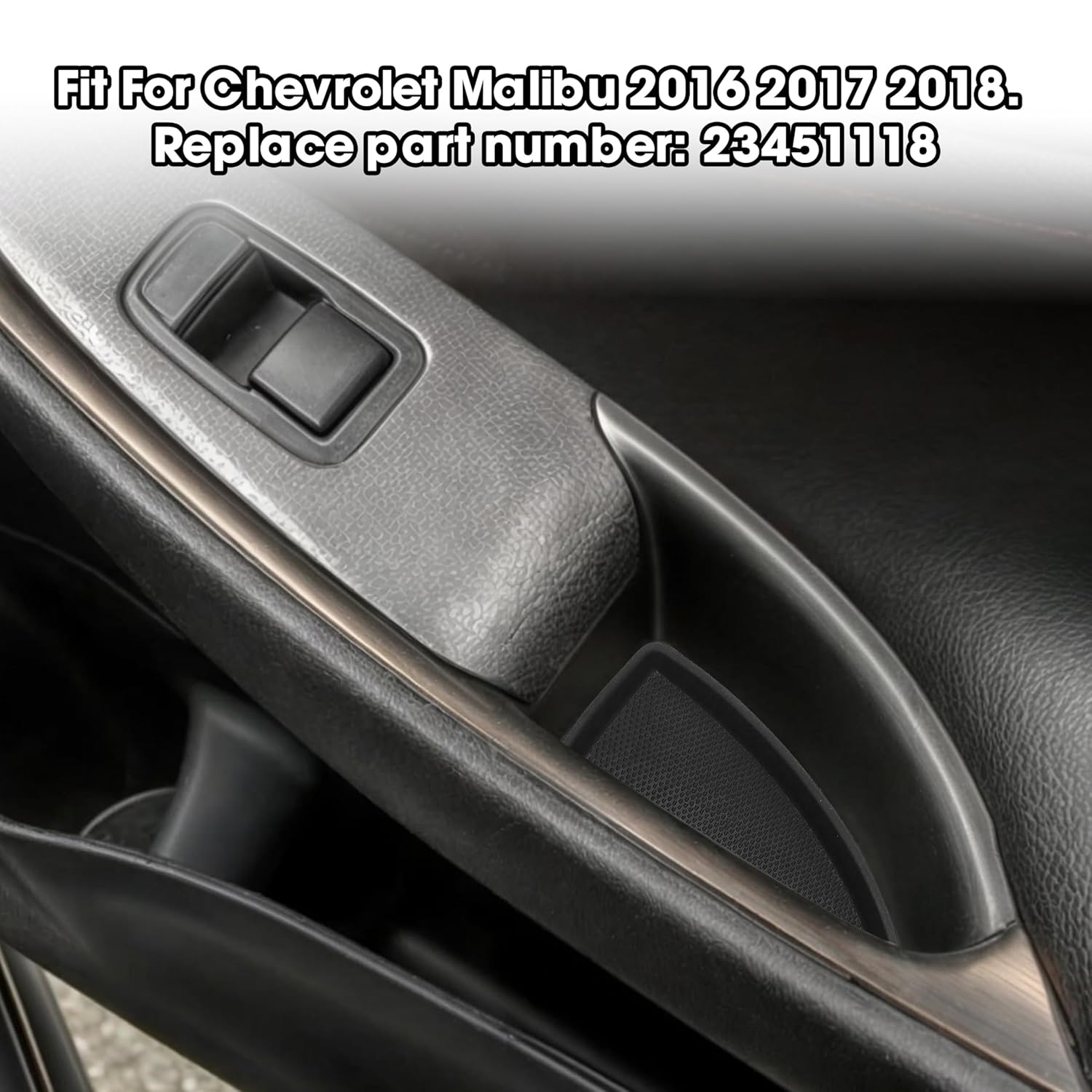 Package: 4pcs/set of Door-Switch Bezel Cap for (Front, Left), (Front, Right), (Rear, Left), and (Rear, Right). That means it is used for both front and back, left and right.. Fitment: Fit For Chevrolet Malibu 2016 2017 2018. Replace part number: 23451118. Ideal for replacing the old/broken parts on your model!. The product is perfect as described. The quality is the same as the original part of your vehicle to make it work better….