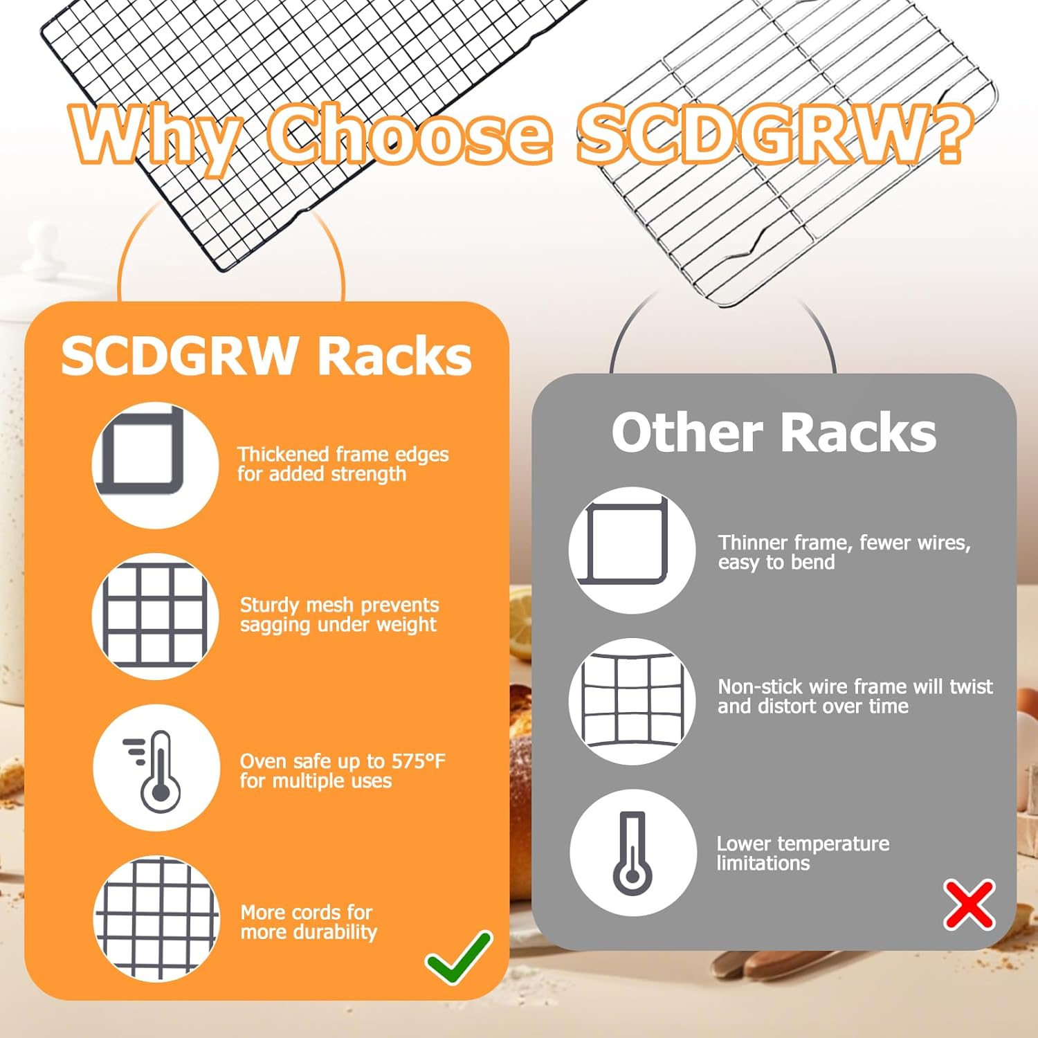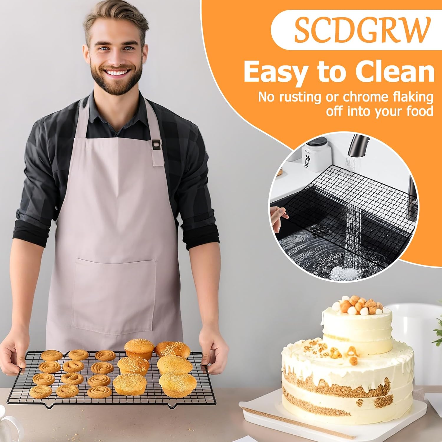 - 【High Quality Material】 Our cooling racks made of food-grade stainless steel without metal plating or coating, ensuring sturdiness and rust – resistance. With 4 supportive feet and 2 crossbars, it is stable and won’t tilt. The 0.8 – inch height allows for great all – around air circulation, making cooking, cooling, and baking more even. It’s a must – have for your daily baking.