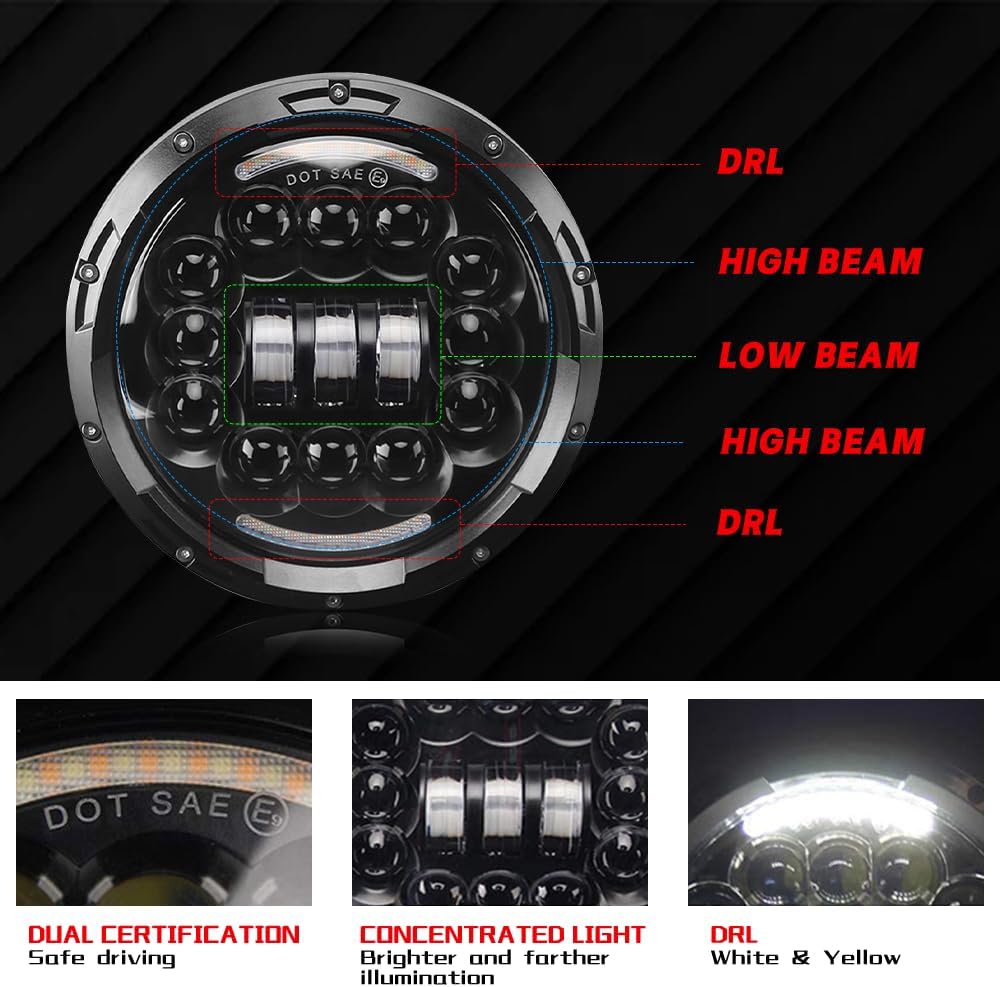 【New upgrade】: Our LED headlights feature powerful central LED low beam headlights and upper and lower LED reflective high beam headlights on both sides. This unique method achieves maximum coverage with clear low beams and incredible wide high beams.. 【Unique new experience】: These headlights feature a dynamic rectangular circular style reminiscent of old-fashioned locking wheels, as well as a bright white halo DRL, enhancing your personal style and protecting your driving.. 【Safer】: rigorously tested to ensure it can withstand the most extreme conditions. Our headlights have undergone rigorous testing, and the powerful fog lights are equipped with clean white DRL halos and warm amber turn signal halos, allowing you to maintain visibility, convey important information to other drivers, and highlight your unique driving style. To ensure that it meets or exceeds DOT strength, lifespan, and visibility standards….