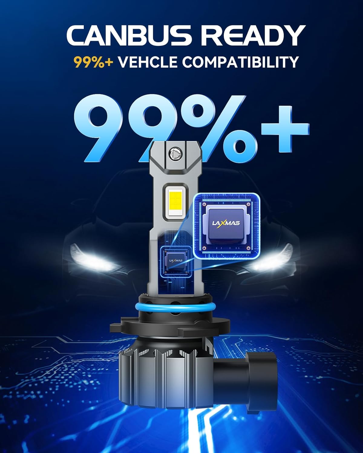 - Almost 100% Universal Fit: 9005 light is CANbus design, fit 99.99% vehicles without error or flickering issue. Note: For very few special types, additional bus decoders may be required to help the bulb perform well(Let Laxmas Know)
