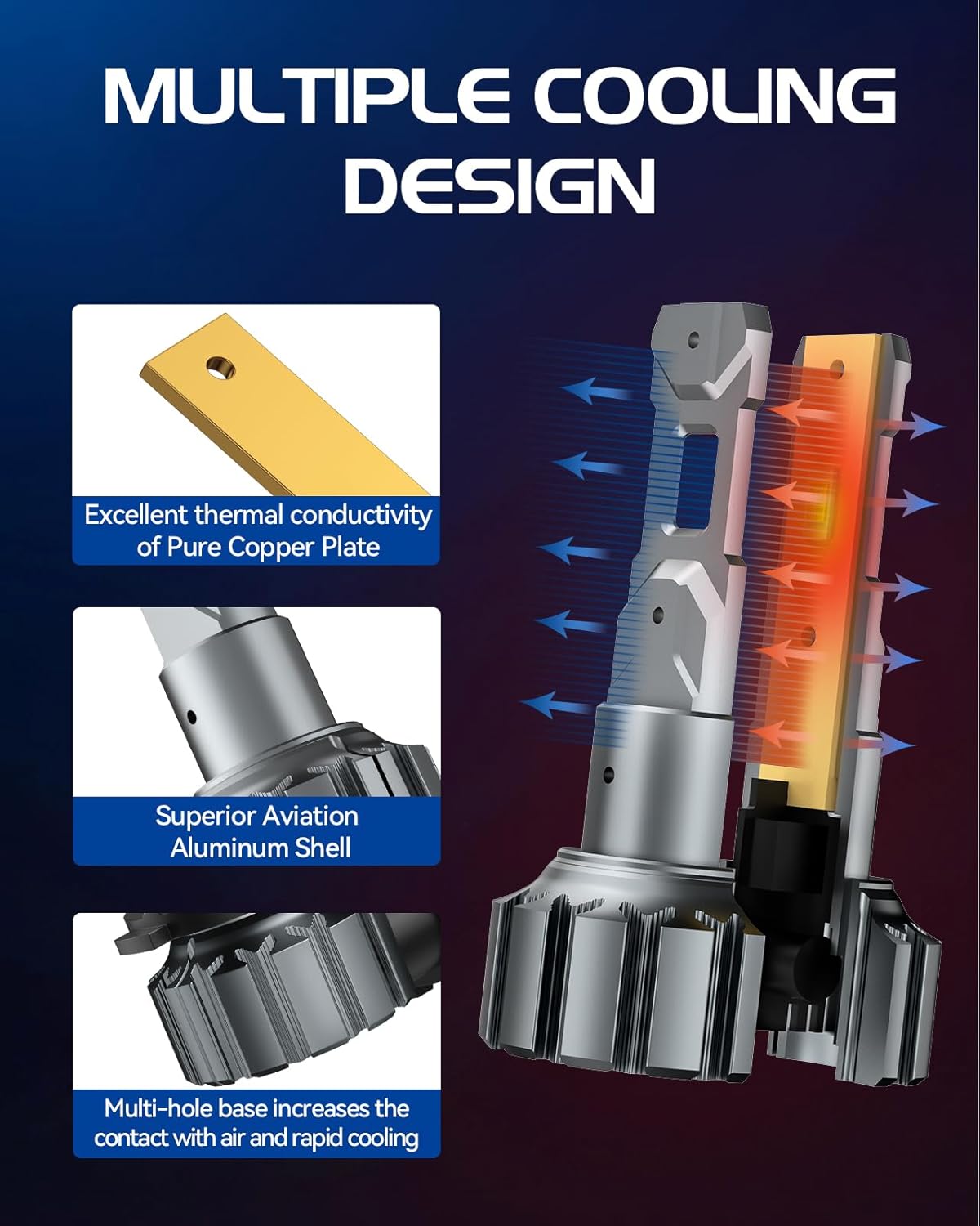 Over 50,000 Hours Lifespan: 9005 bulbs boast over 50,000 hours lifespan. With double copper tubes, heat dissipation is optimized, ensuring 10+ years of use (at 10hrs/night drive). Brighter, cooler, and longer-lasting for your vehicle