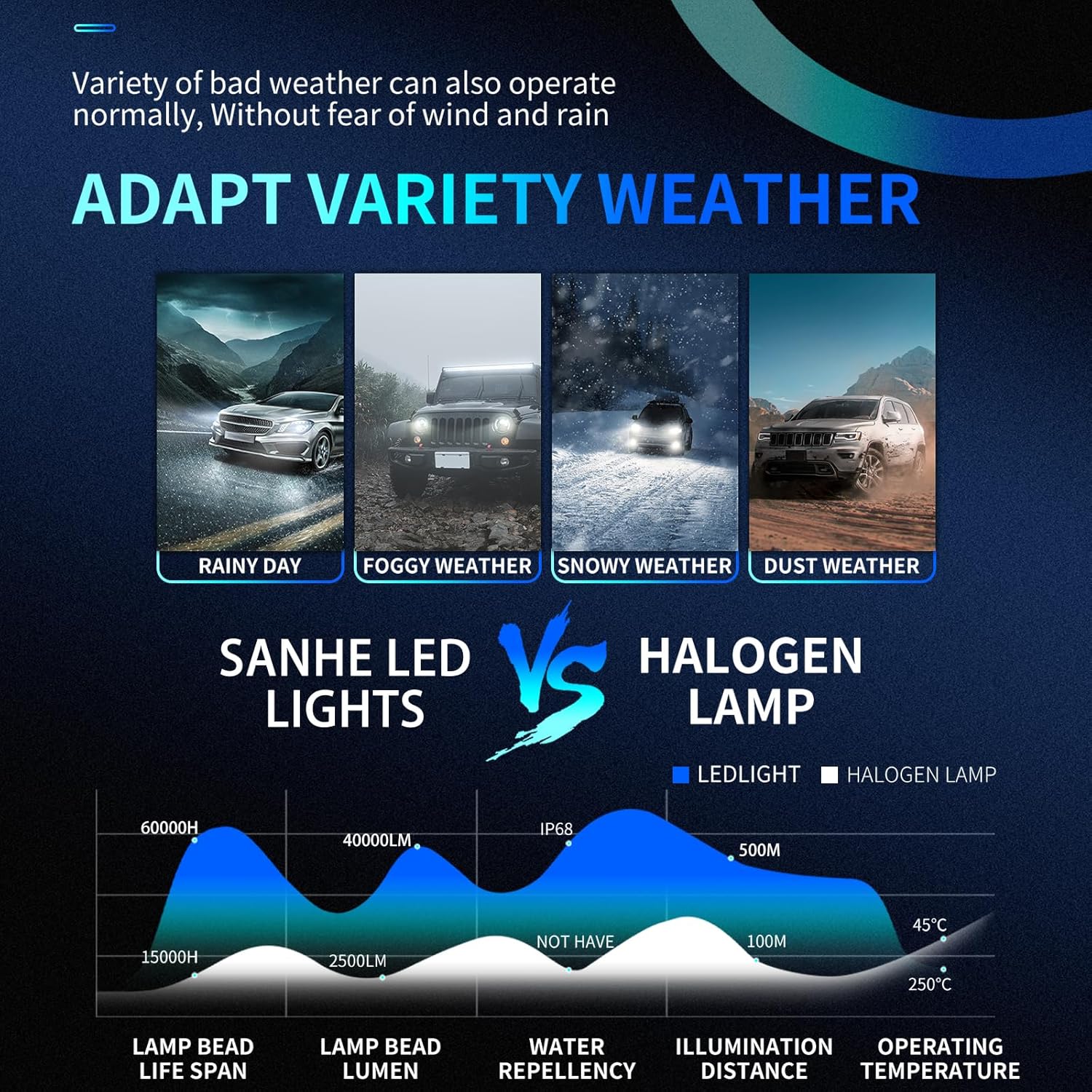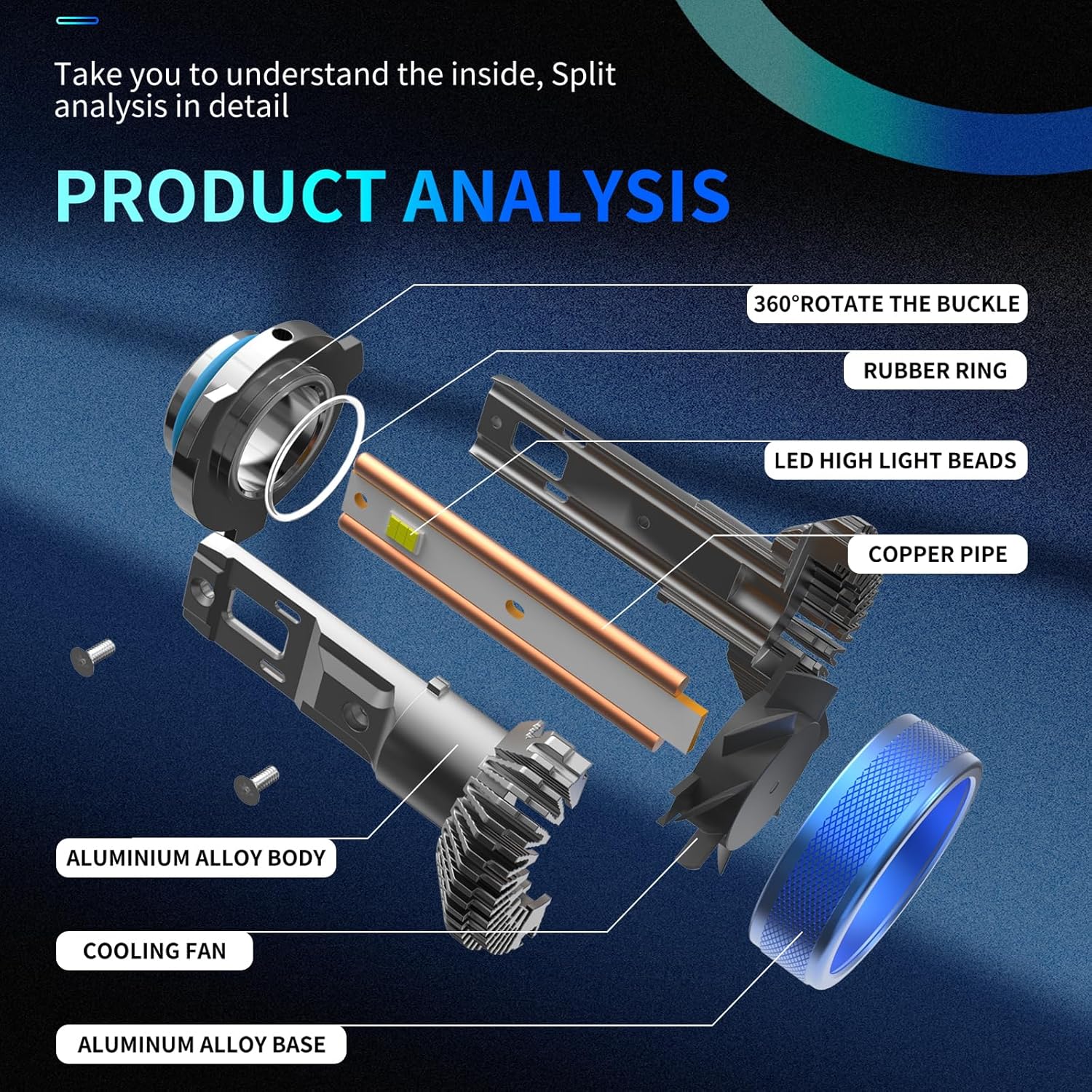 【More Than 60000HRS Longer Lifespan】Built with aerospace-grade aluminum and equipped with a high-speed 15,000 RPM turbo cooling fan, these bulbs are made to last. With over 60,000 hours of continuous light, they minimize the need for replacements, offering long-lasting reliability.IP68 waterproofing lets you drive in all kinds of bad weather.