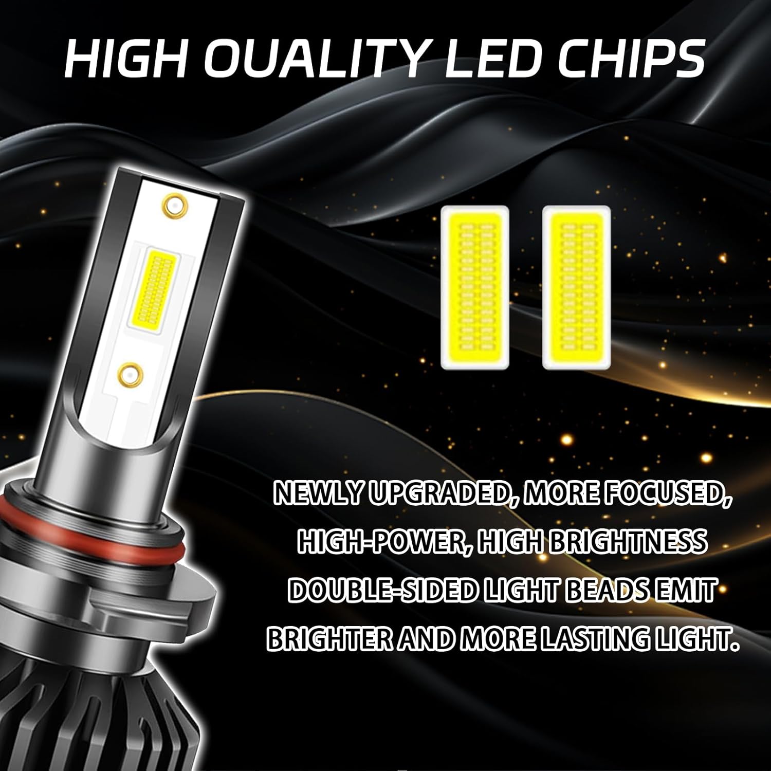 - 【High Brightness】Our bulbs have built-in intelligent IC driver, 10000LM, 6000K cool white, 500% brighter than original halogen bulbs, ultra-focused 360-degree full lighting, wide field of view, can be used in any extreme weather conditions, providing you with a more comfortable night driving experience