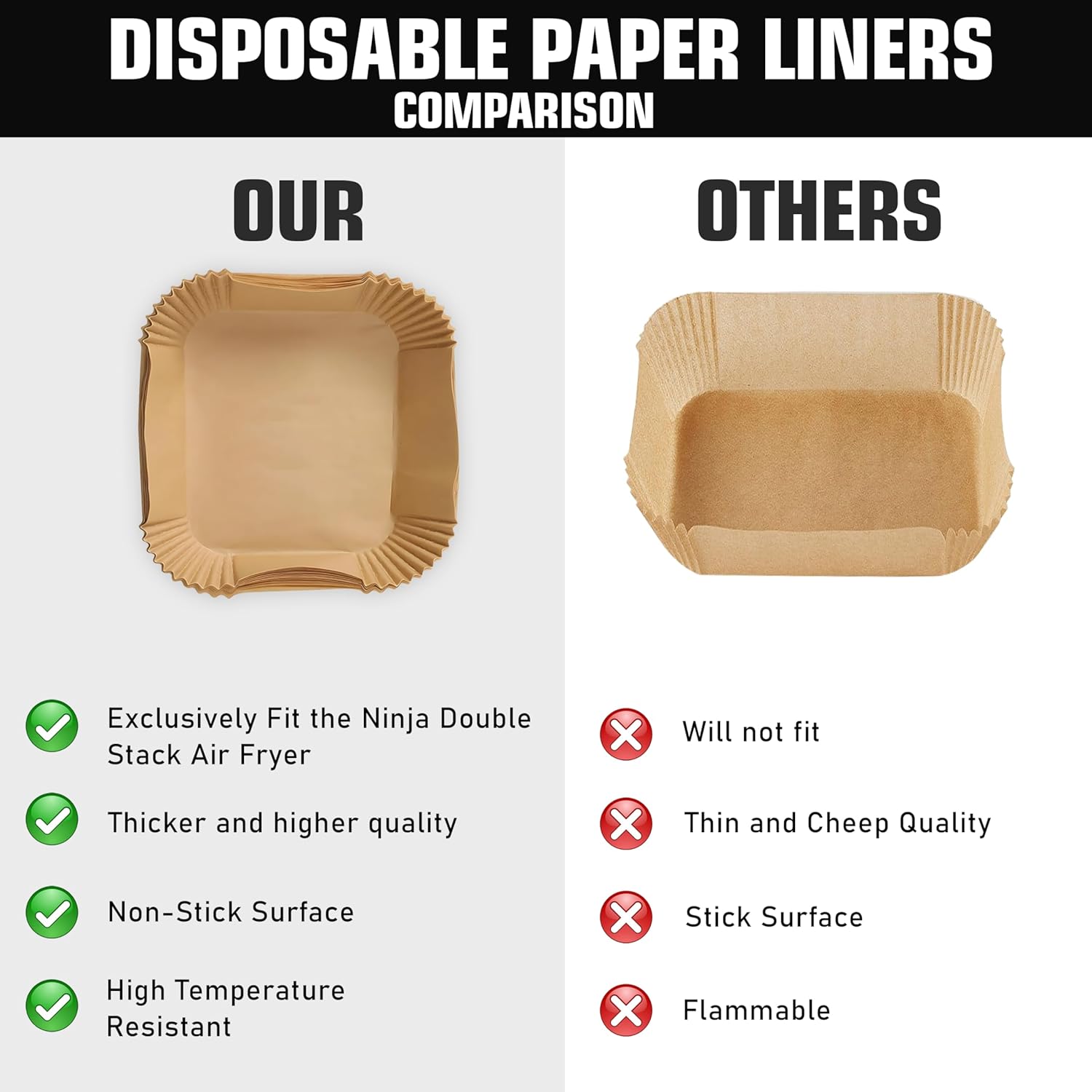 PERFECT FIT: Custom-made 5QT paper liners designed specifically for the Ninja Double Stack XL air fryer model SL401.. EXTRA LARGE VALUE PACK: Package of 150 liners allows you to enjoy all the benefits of air frying without dealing with messy manual cleanups.. MESS-FREE COOKING: Lightly greased liners contain spills and splatters for easy cleanup after each use….