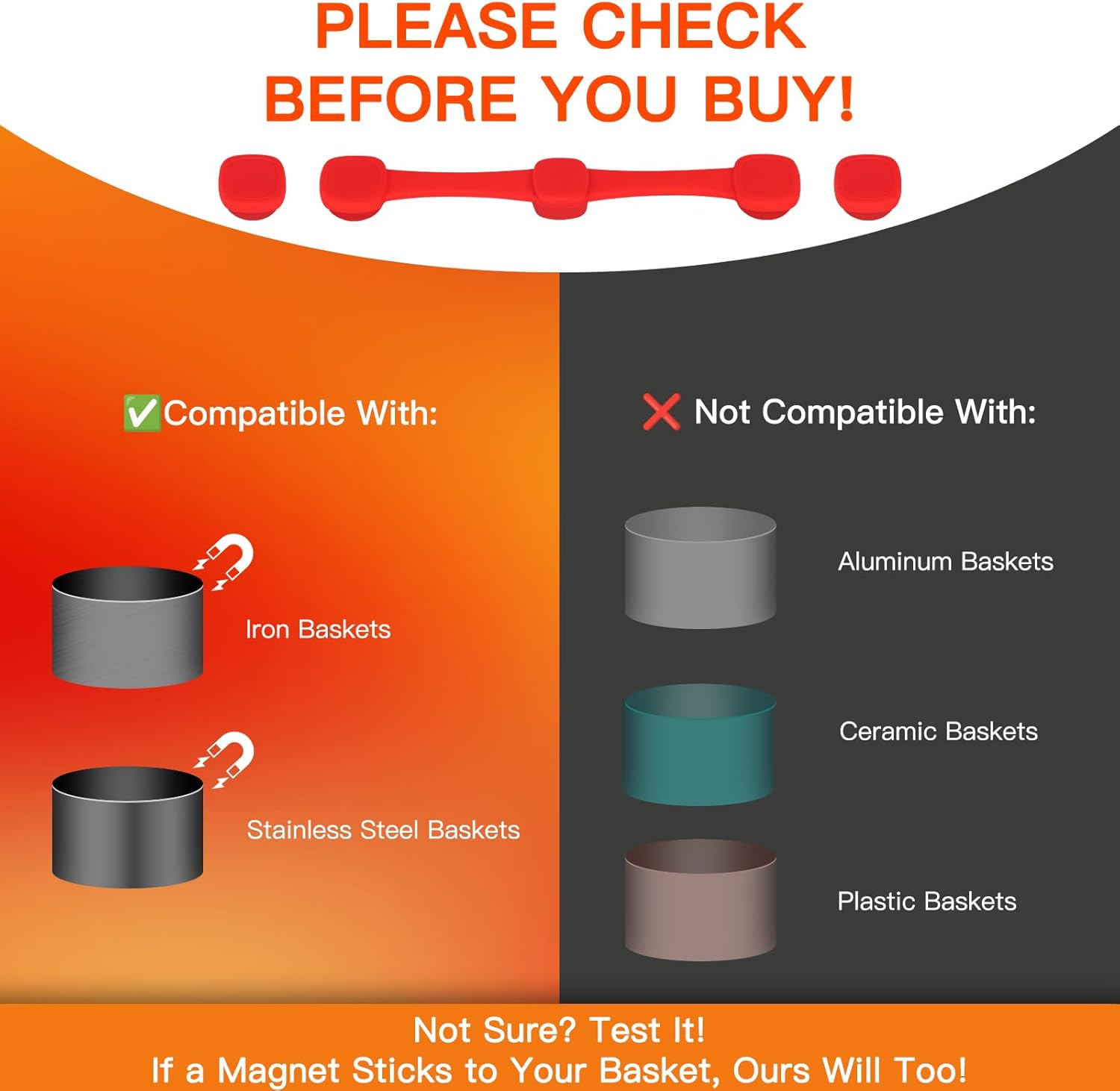 【Universal Compatibility】Compatible with all air fryer brands and models that have metal components. Before purchasing, please test your air fryer basket by checking if a regular magnet sticks to it. If it does, these magnetic buckles will work perfectly!