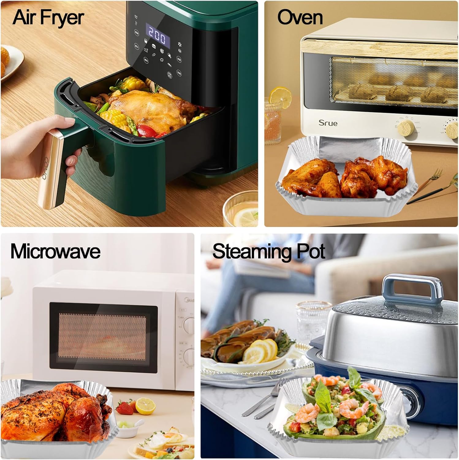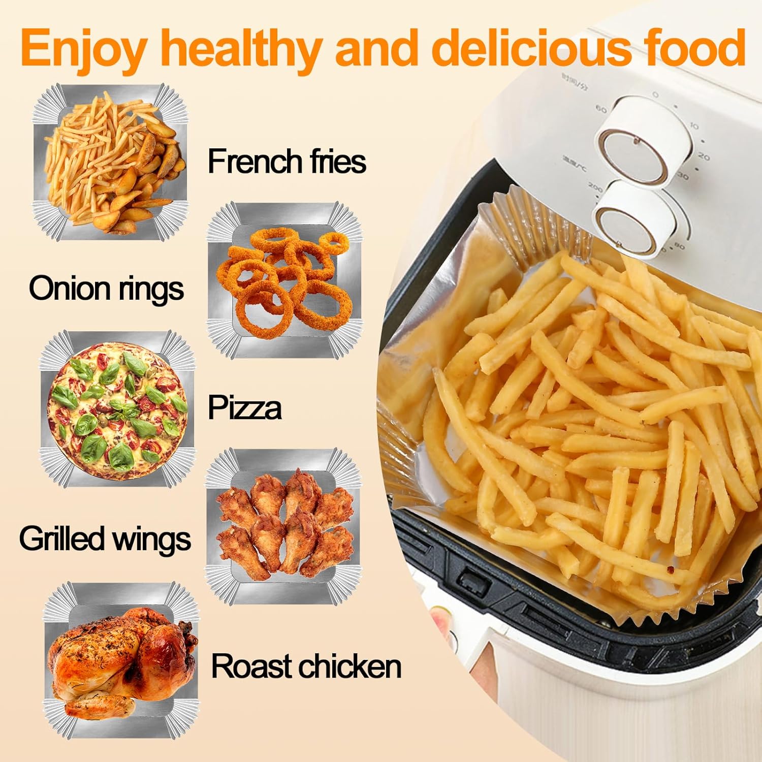 - 【Keep Your Air Fryer Clean】:The aluminum foil material makes our Air Fryer Liner 100% oil and water resistant. It can effectively keep food residue away from air fryer. You no longer have to spend a lot of time and effort cleaning the air fryer.