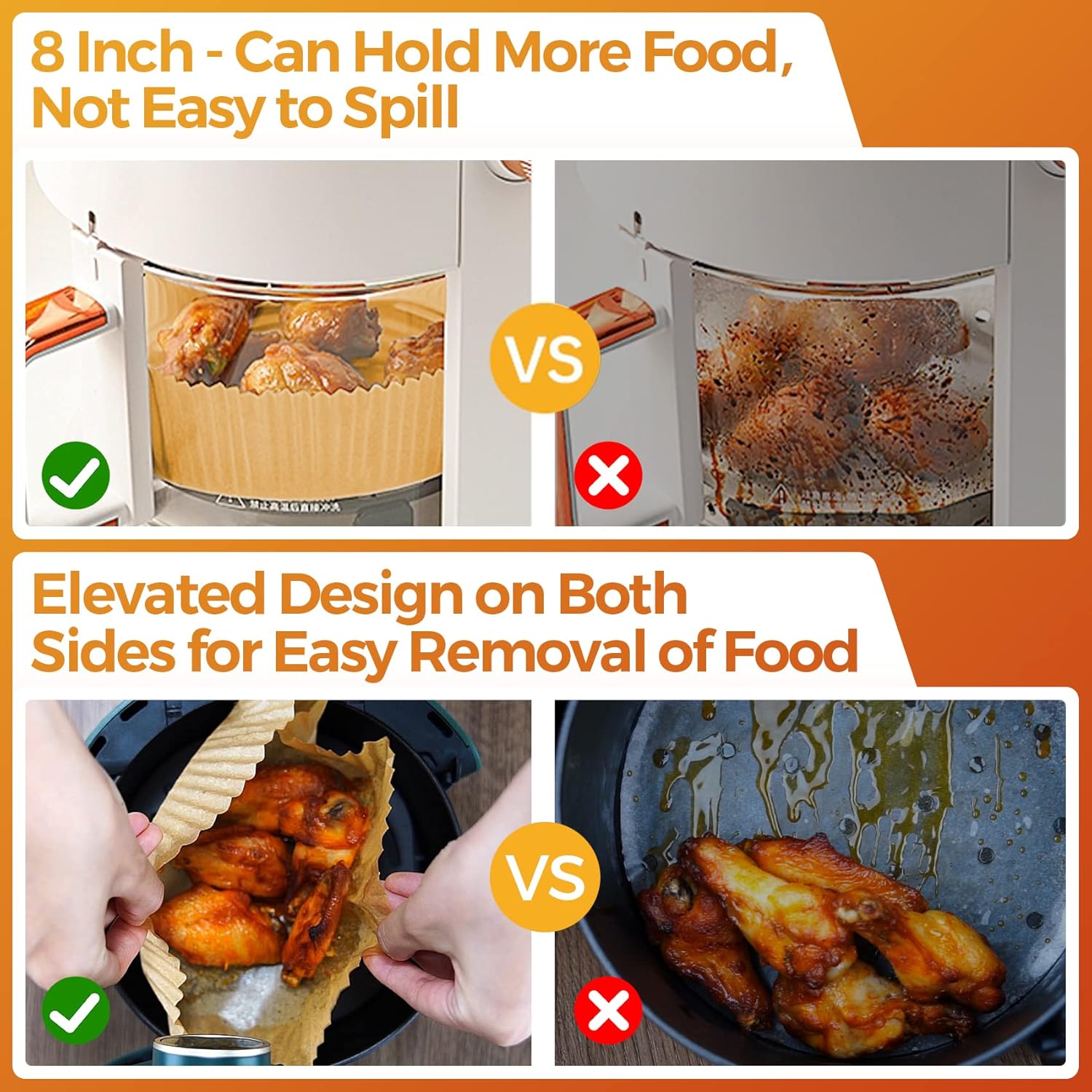 - Healthy & Reliable Materials: Vailnd air fryer parchment liners are made of raw wood and food grade silicone oil coating, unbleached, no fluorescent agent, BPA-free, PFAs-free, making your baking safe, non-toxic and free from food mes