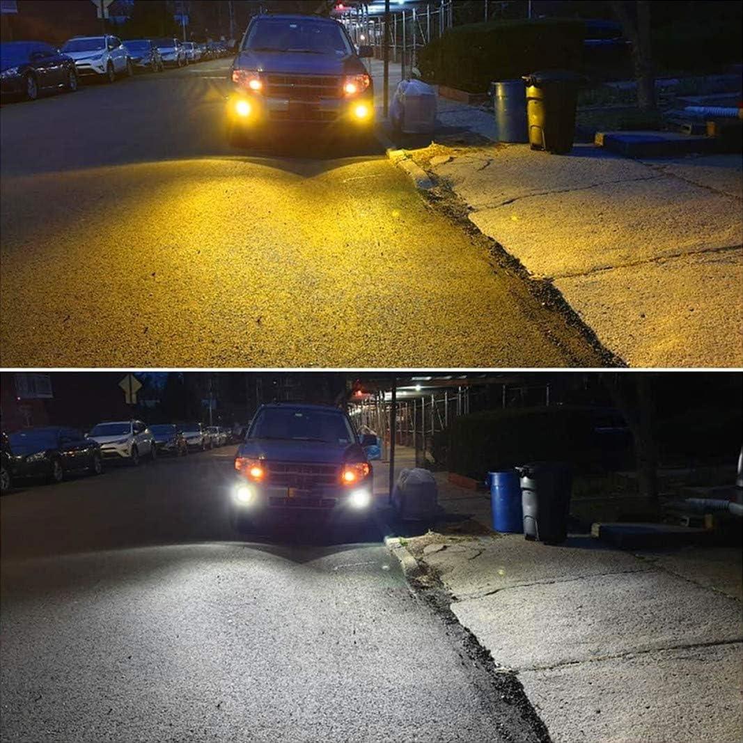 (Set of 2) LED Chips: Equipped with high quality 10pcs high power customized CSP SMD per H10 9145 LED bulb.Each LED bulb is about 2600 lumens, total 5200 lumens for both 9145 H10 LED fog light bulbs.. Plug-n-Play, Easy Installation. Waterproof: IP67. Non-polarity LED bulbs.. Dual-Color: 6000K Xenon White/3000K amber yellow; Easily switch color by power on and off of the fog light switch. Powered by Advanced Bright LED Circuitry Technology; Working Voltage: 12V~18VDC….