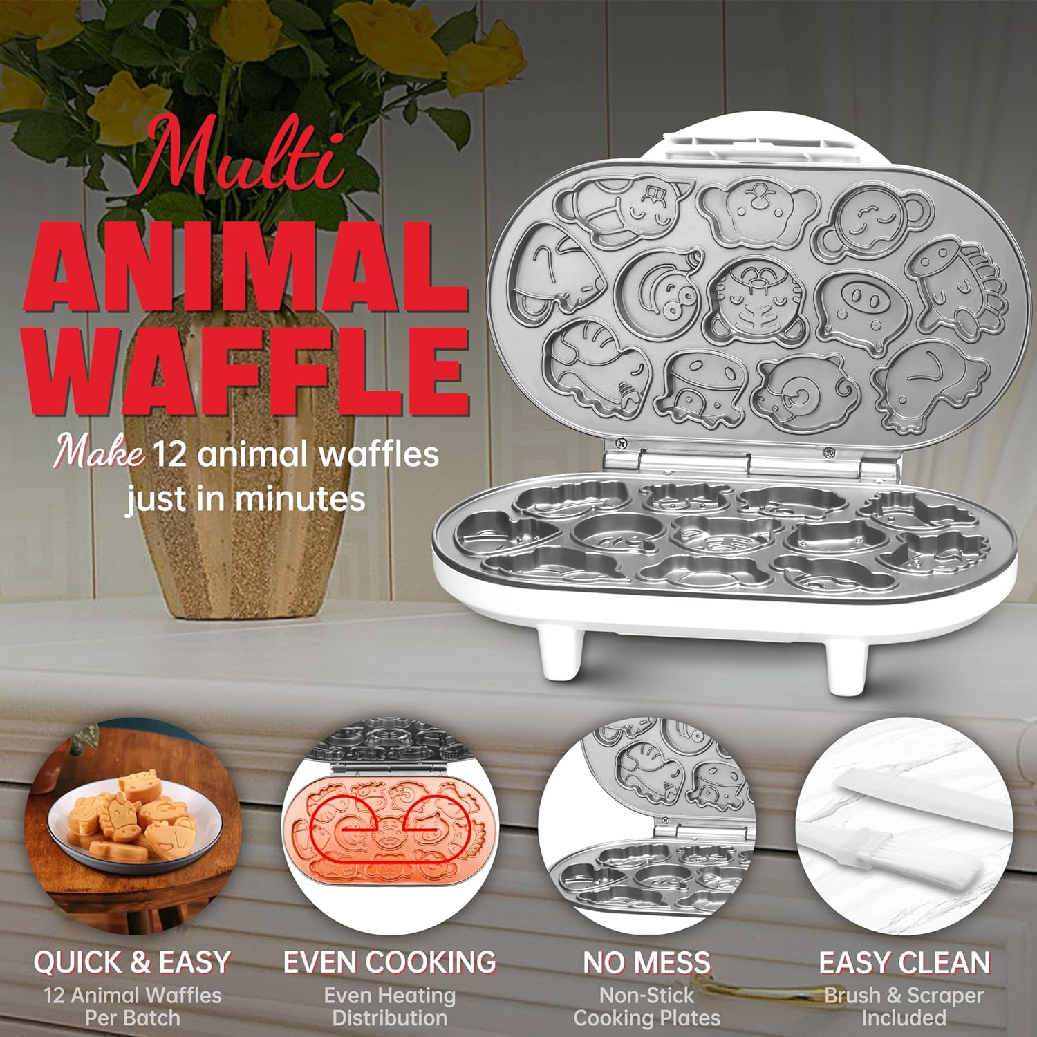 - [THE MORE THE MERRIER]: Your beloved cute animal waffles now available for the entire family to enjoy. With the SugarWhisk cute waffle maker, you can prepare up to 12 of your preferred animal shaped waffles in significantly less time.