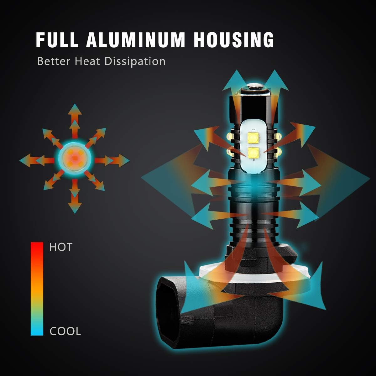 - 【Fitment】Work as 881,881L, 881X, 889, 862, 894, 894X, 896, 898, 886, 888 bulb replacement, used for Daytime Running Light, Fog Light ONLY. (no high/low beam function)