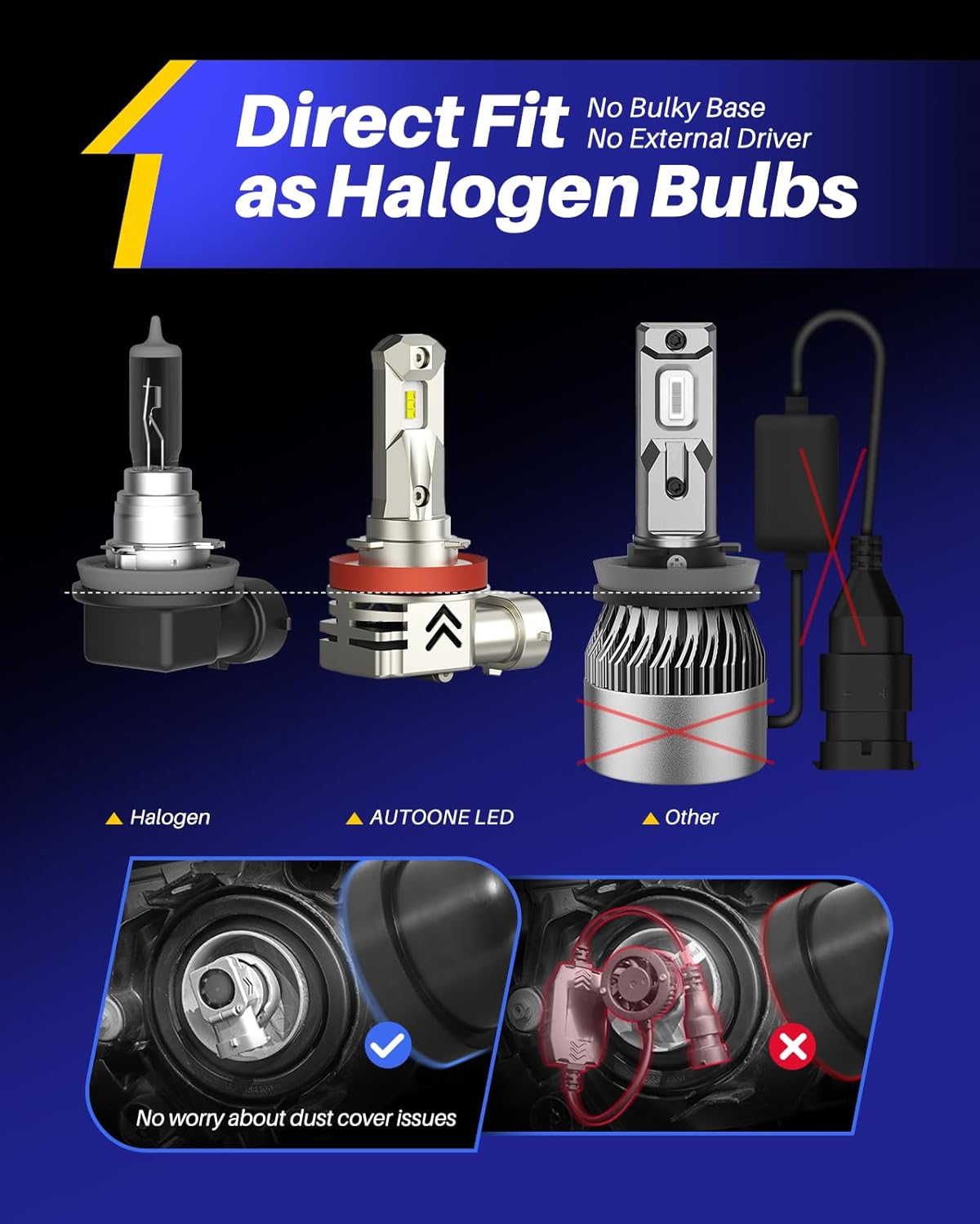 • 【500% Brightness】- AUTOONE 9005 LED light bulbs are equipped with superior ZES LED chips. Provides excellent 360° illumination and 20,000 LM output with no dark spots or shadow light. Great 500% brightness update for fog light